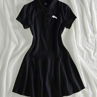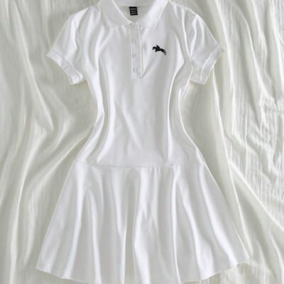 Elamini فستان نسائي كاجوال بياقة بولو وأكمام قصيرة مطبوعة بطباعة الفارس