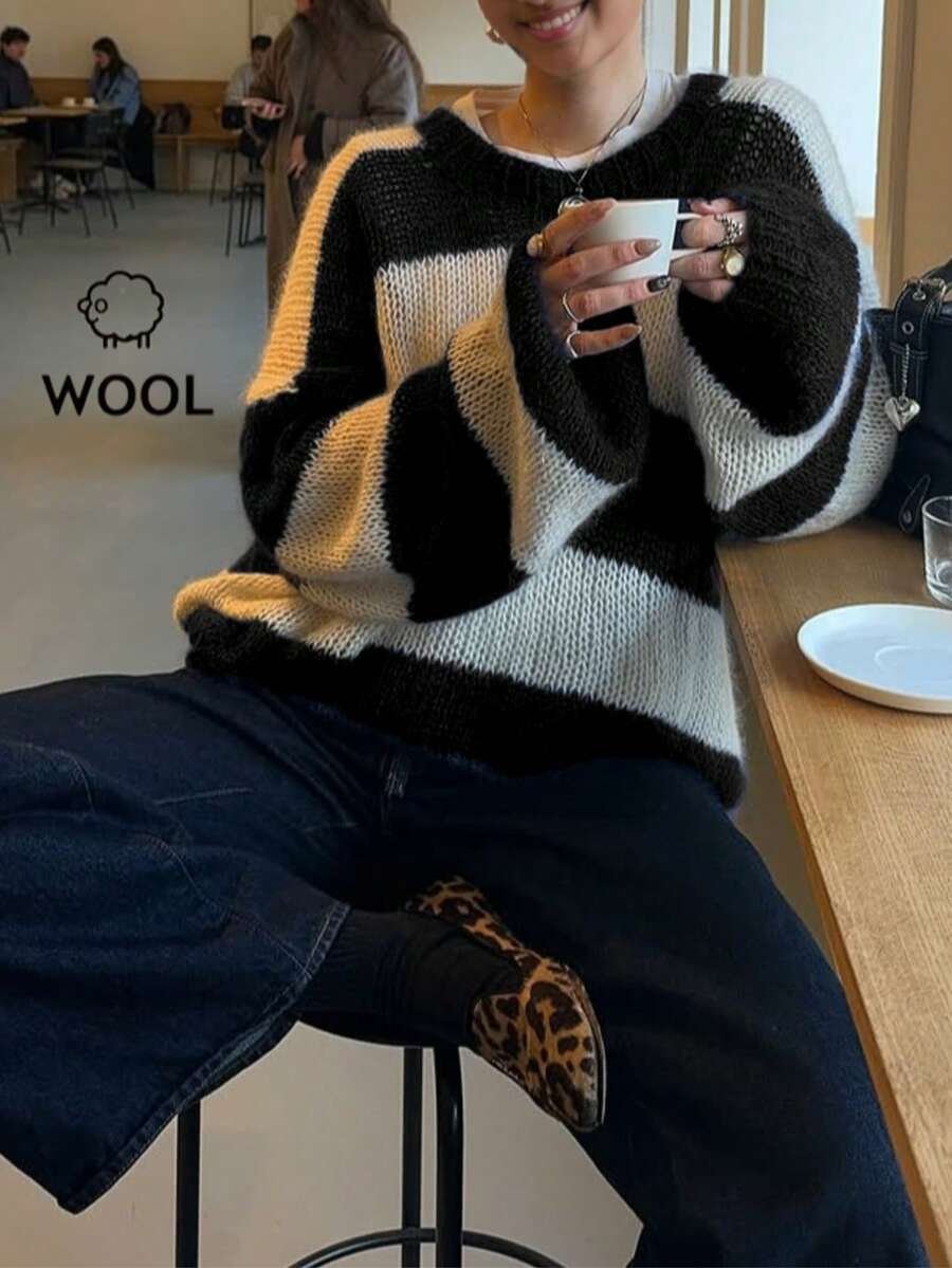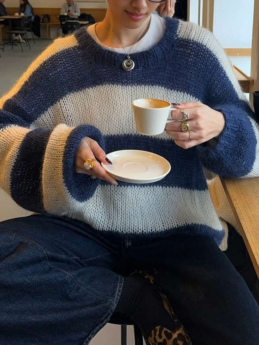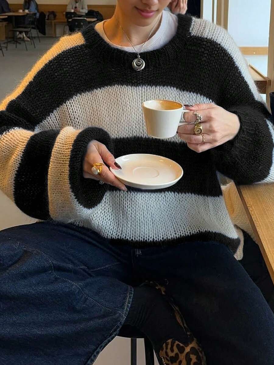 - اسم المنتج: سويتر نسائي فضفاض ب بألوان متداخلة