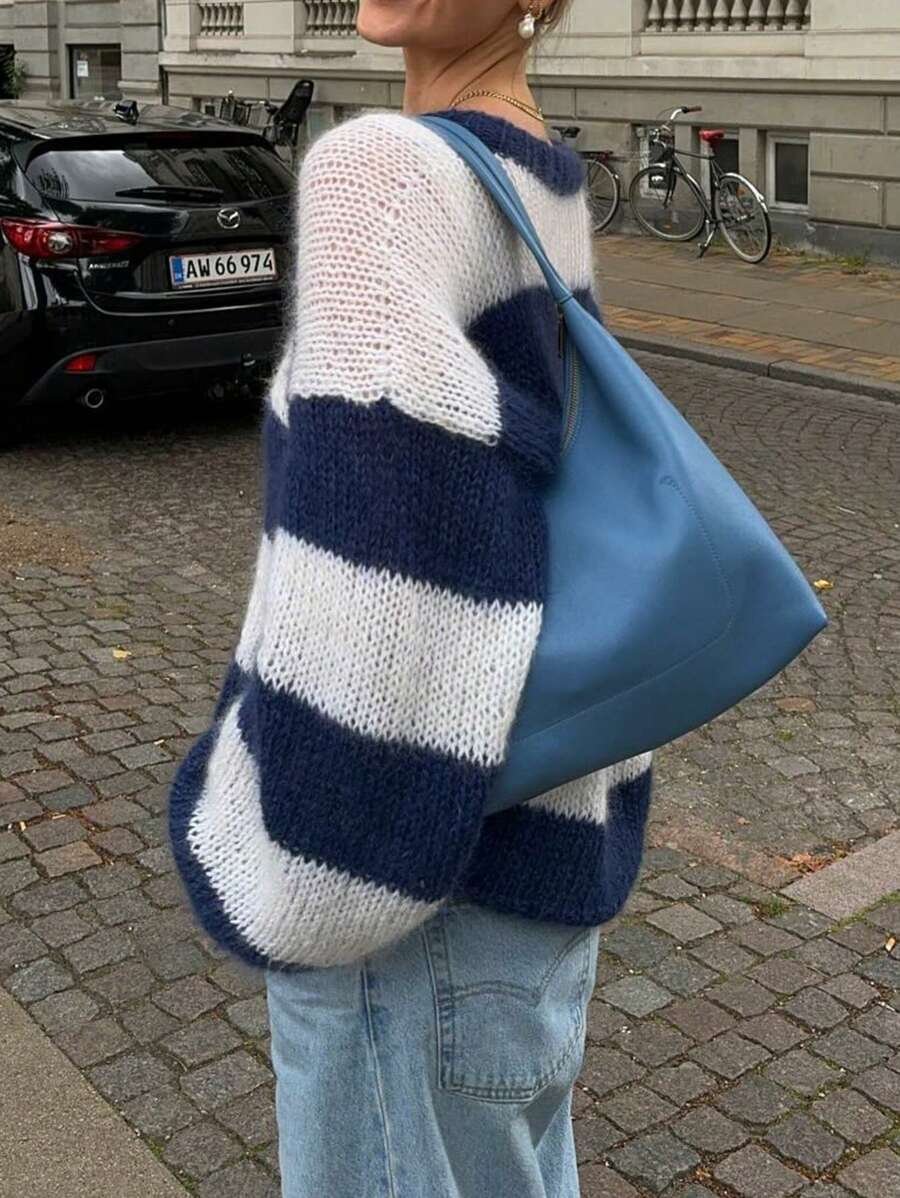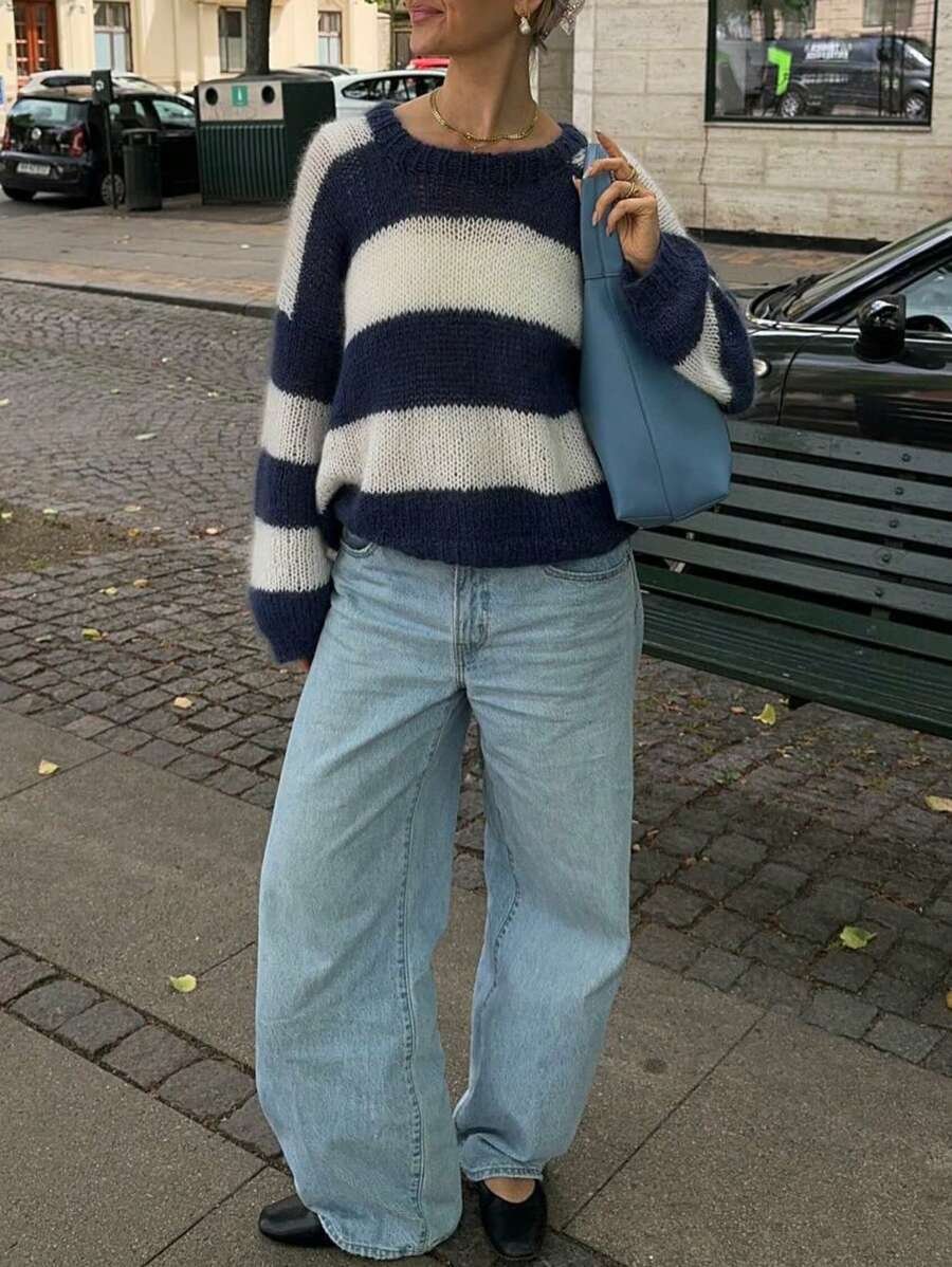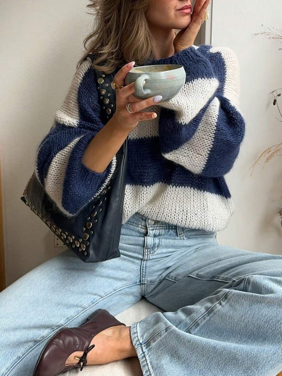 - اسم المنتج: سويتر نسائي فضفاض ب بألوان متداخلة