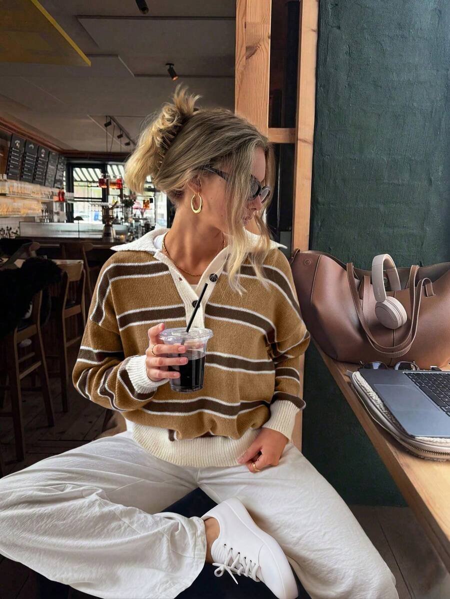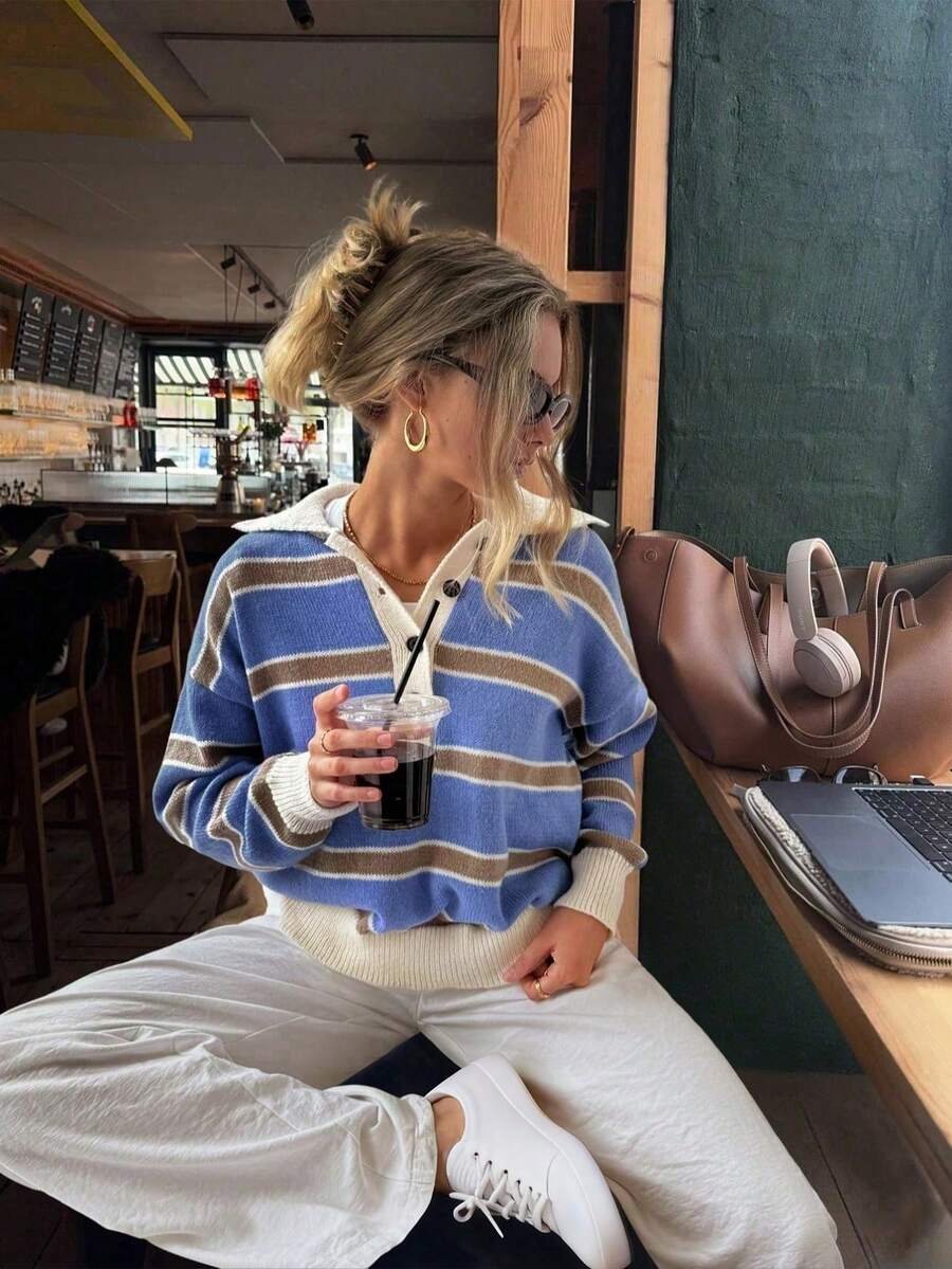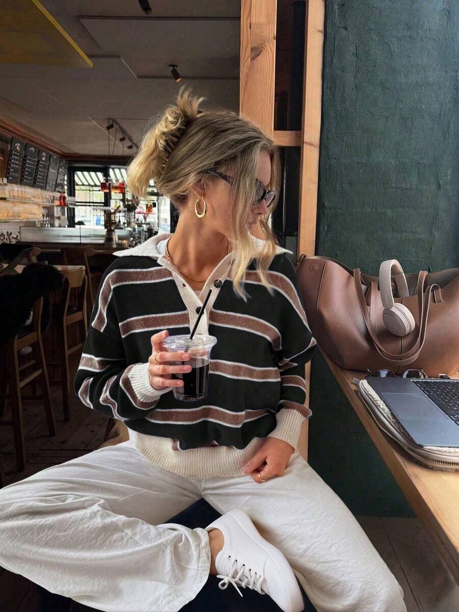 احتفظي بأناقتك في كل لحظة مع كنزة الصوف المخططة التي تعكس ذوقك الرفيع!