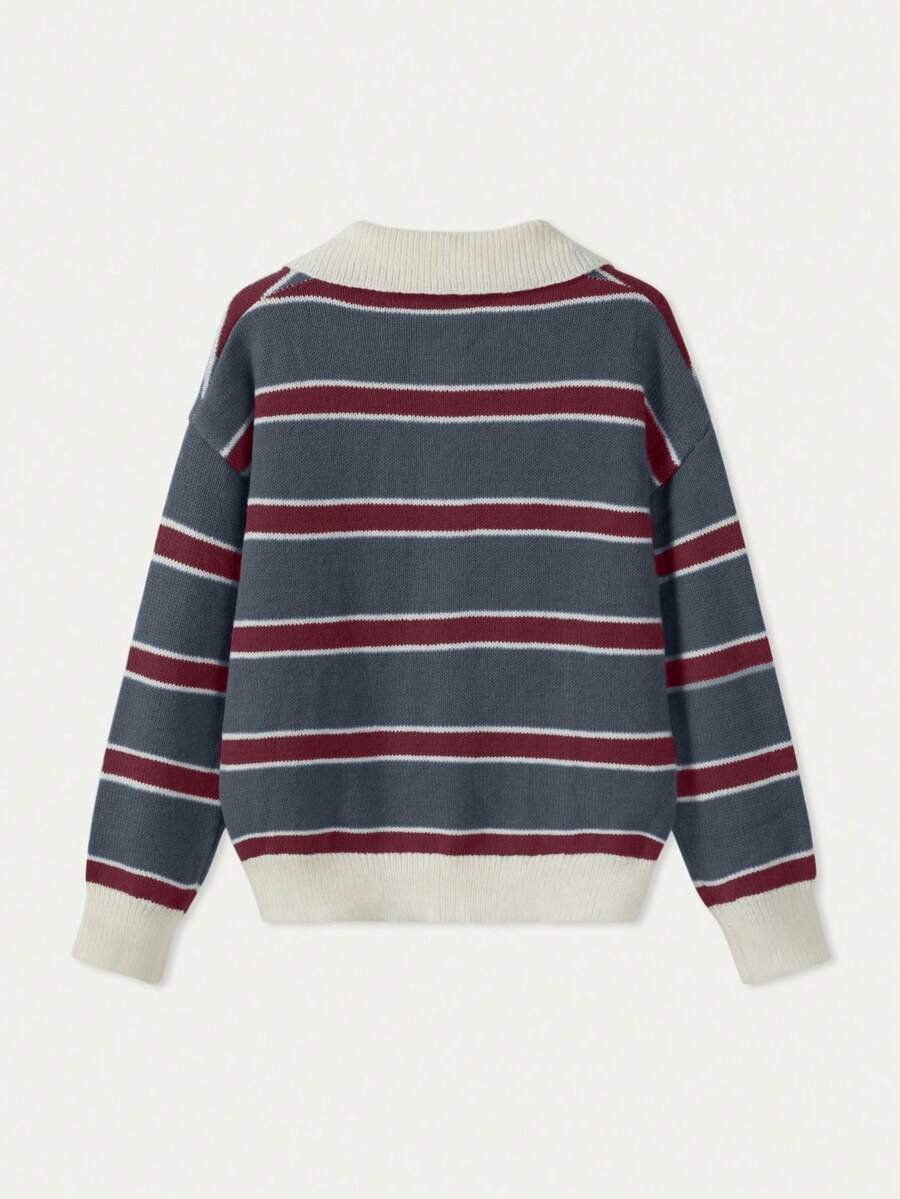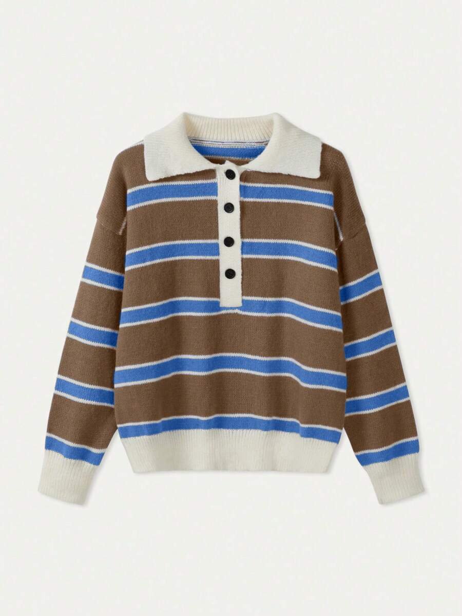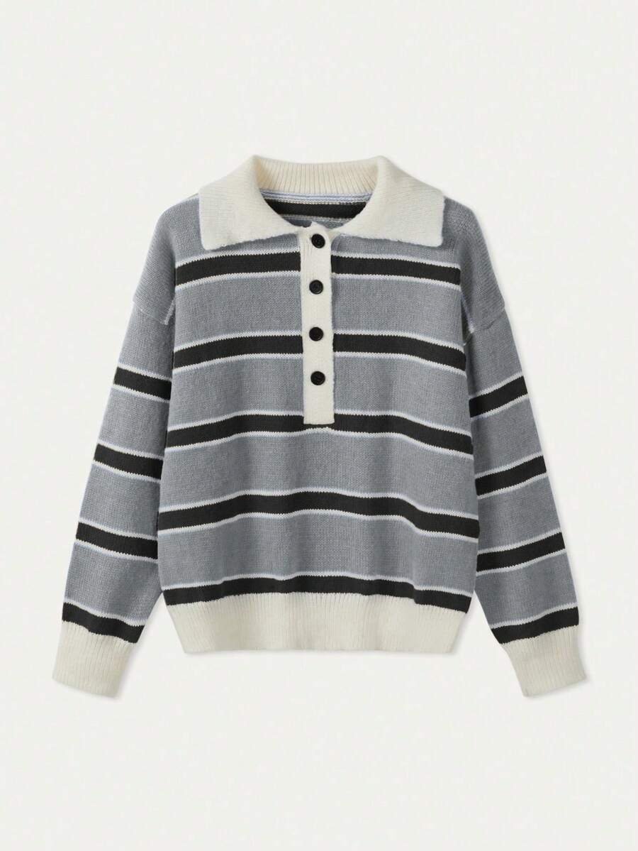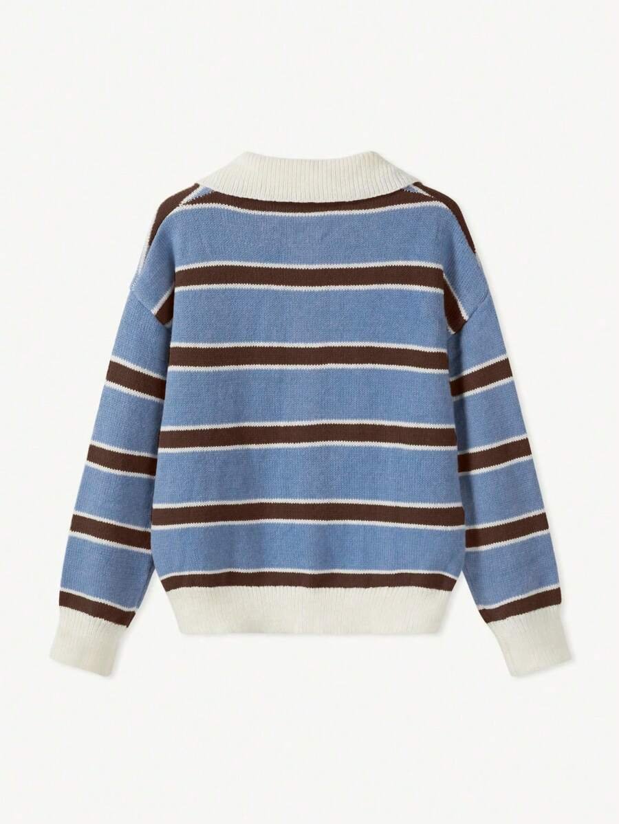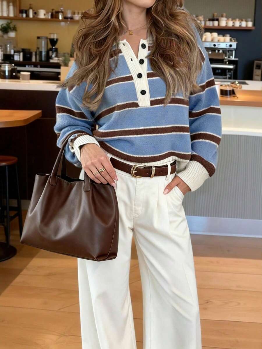 - اسم المنتج: كنزة صوف بولو مخططة بتباين الألوان للنساء