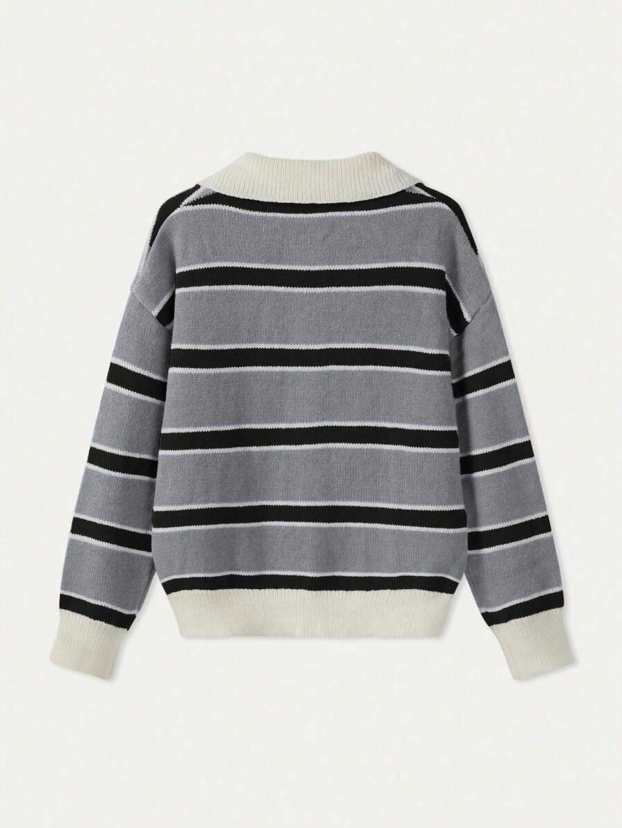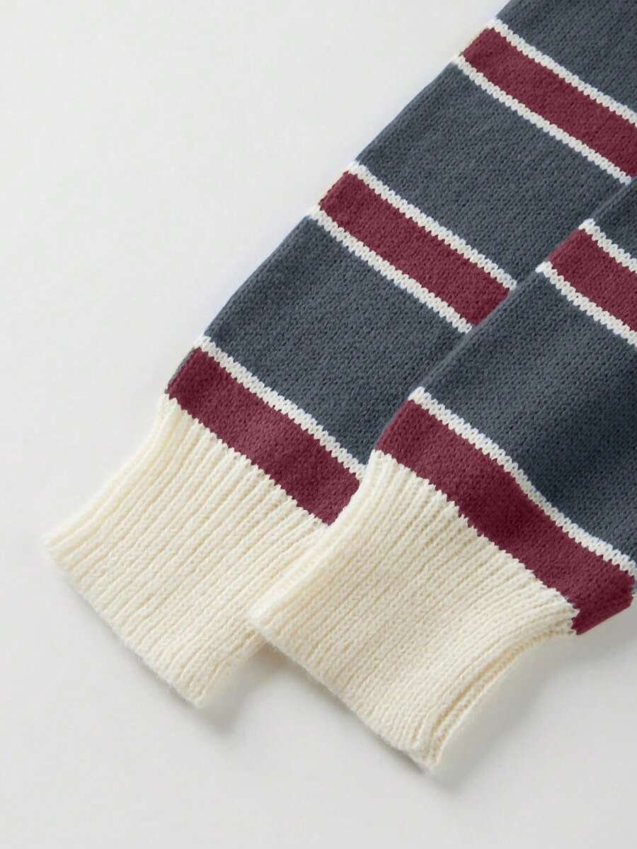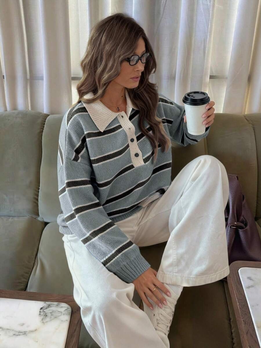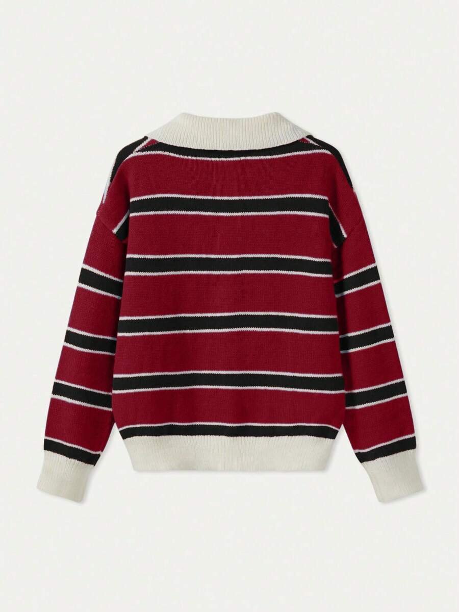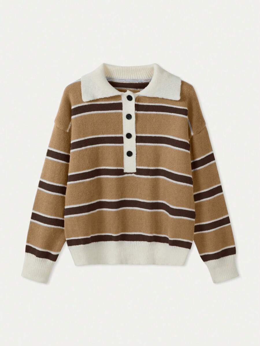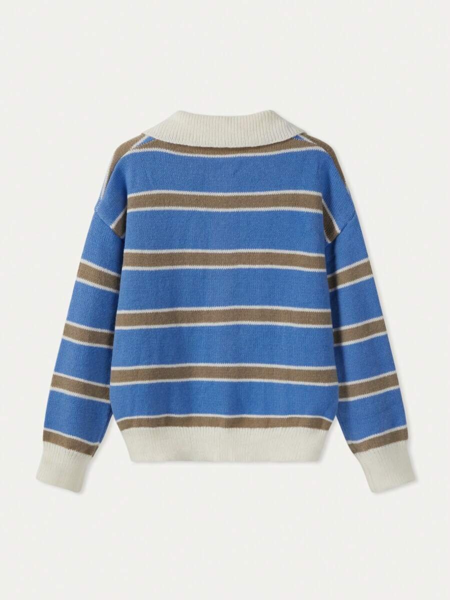 - اسم المنتج: كنزة صوف بولو مخططة بتباين الألوان للنساء