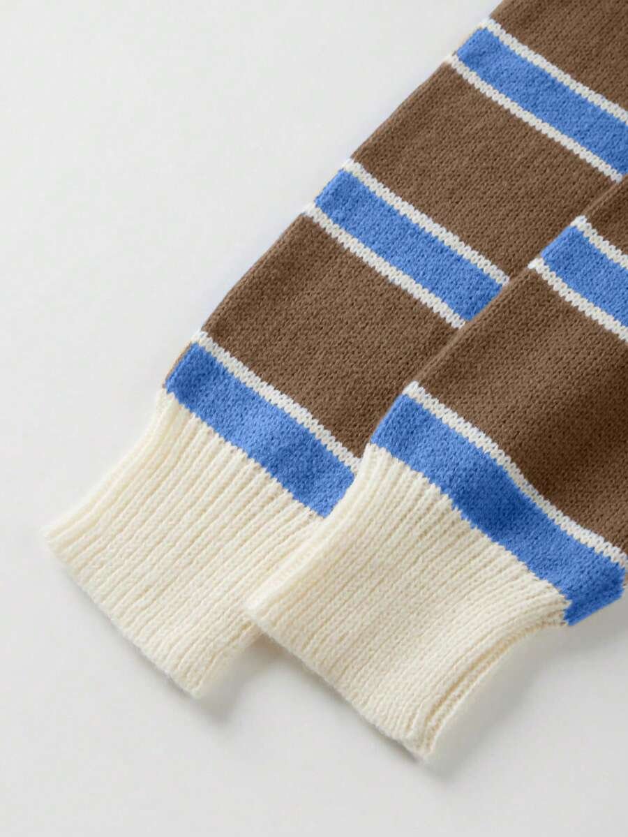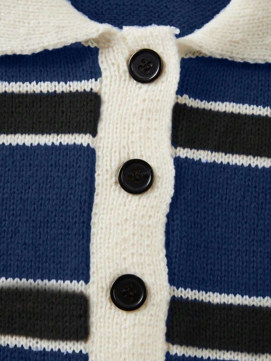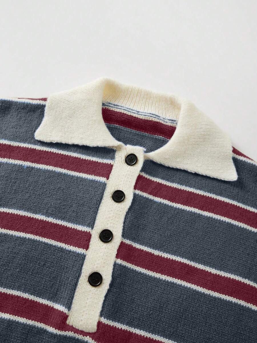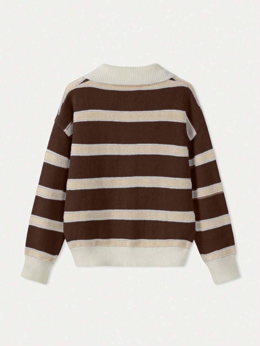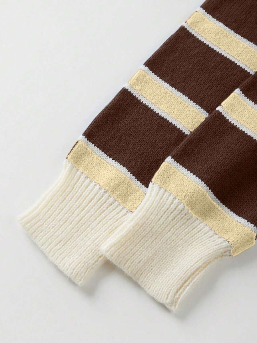 - اسم المنتج: كنزة صوف بولو مخططة بتباين الألوان للنساء
