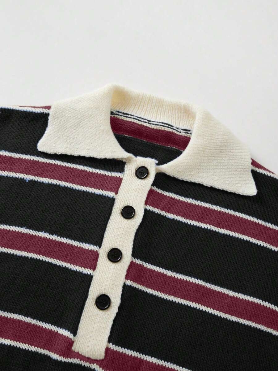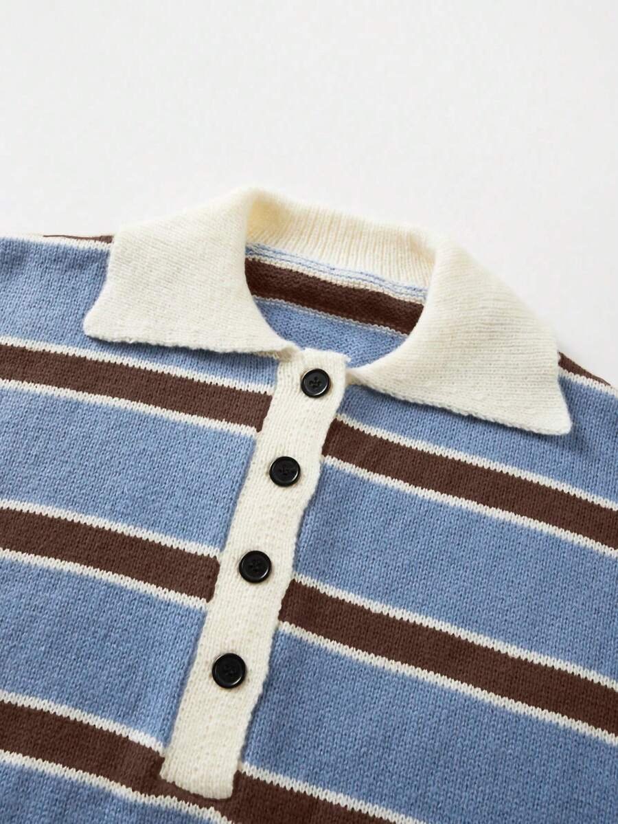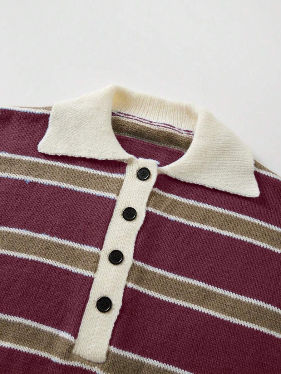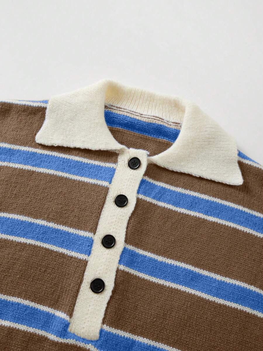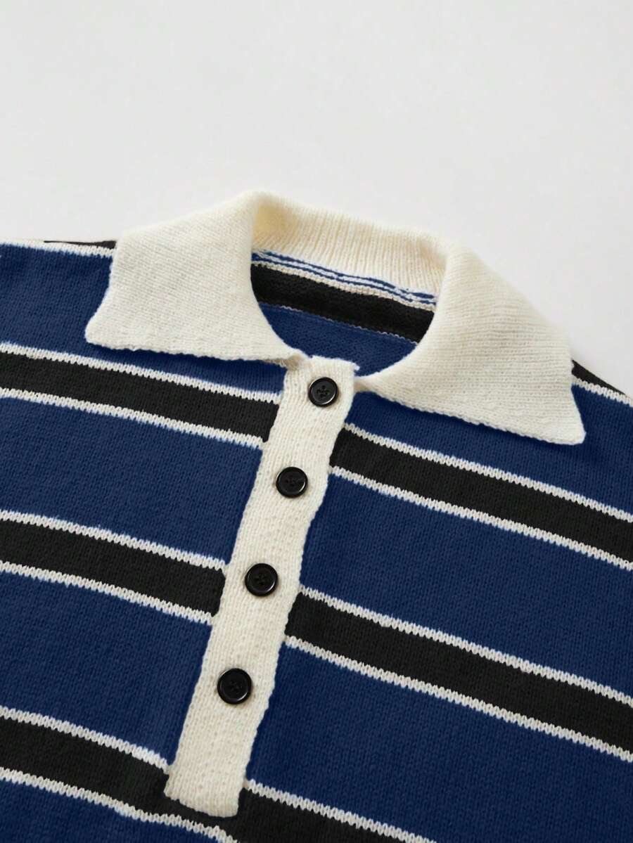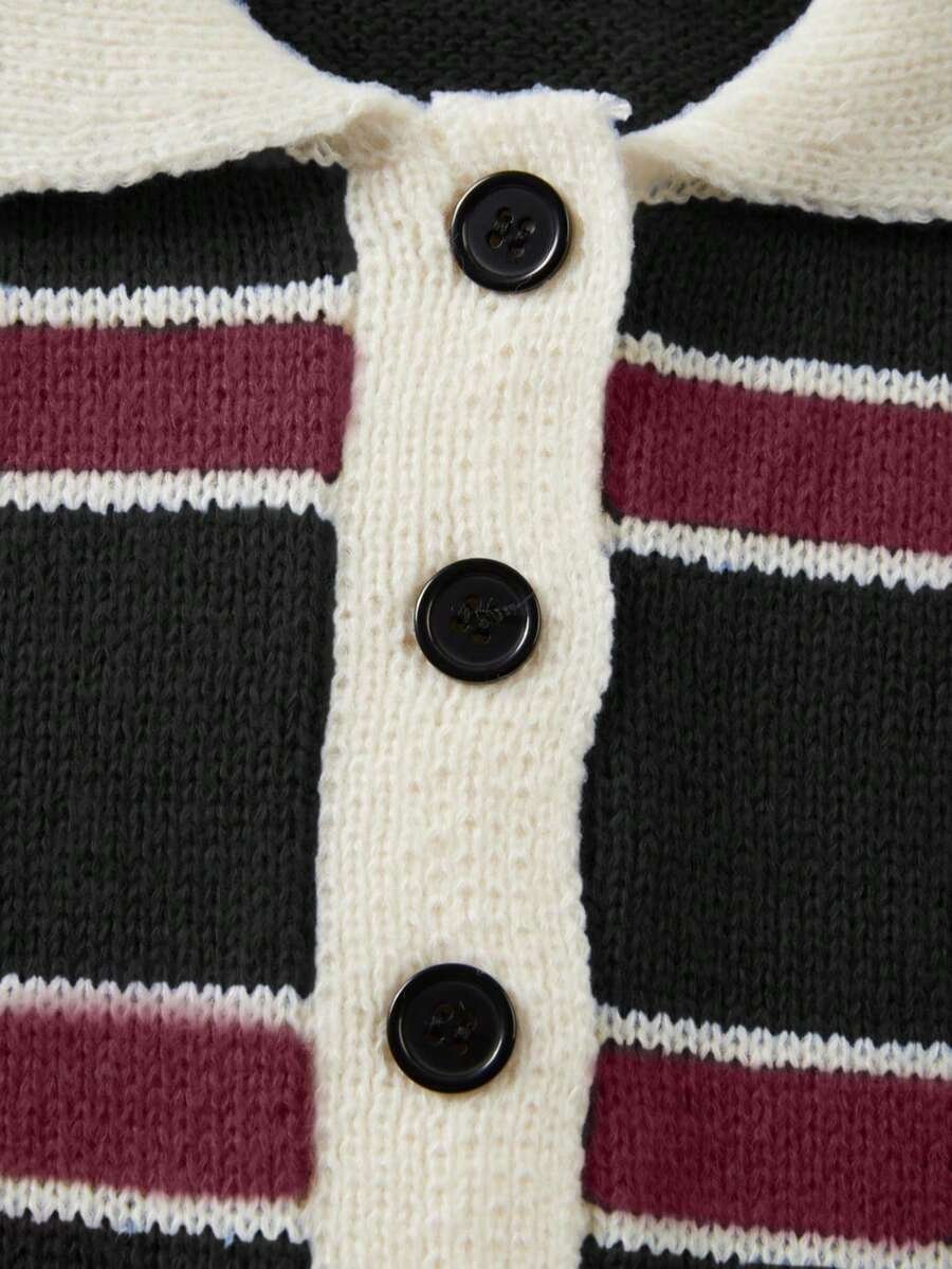- اسم المنتج: كنزة صوف بولو مخططة بتباين الألوان للنساء