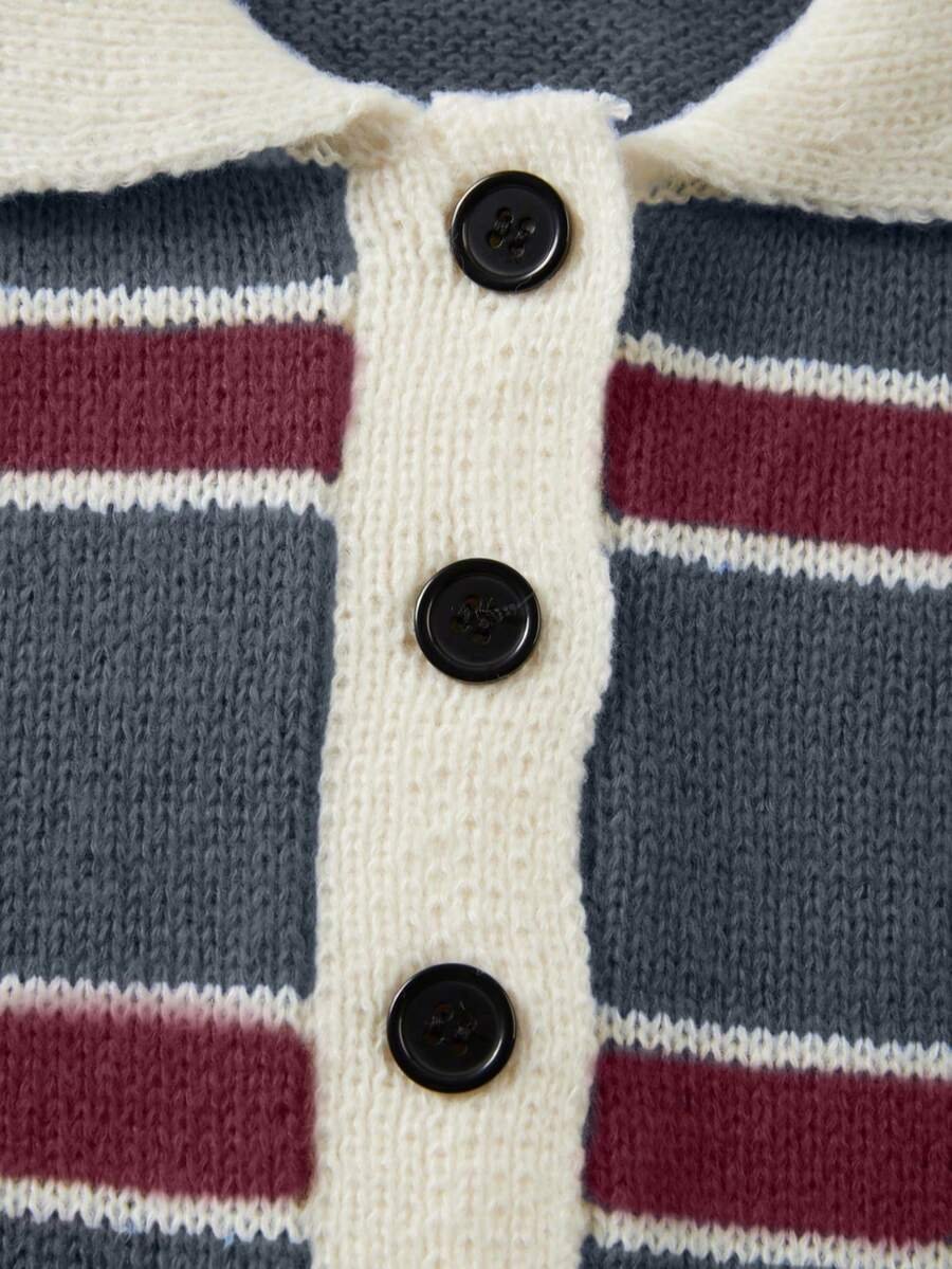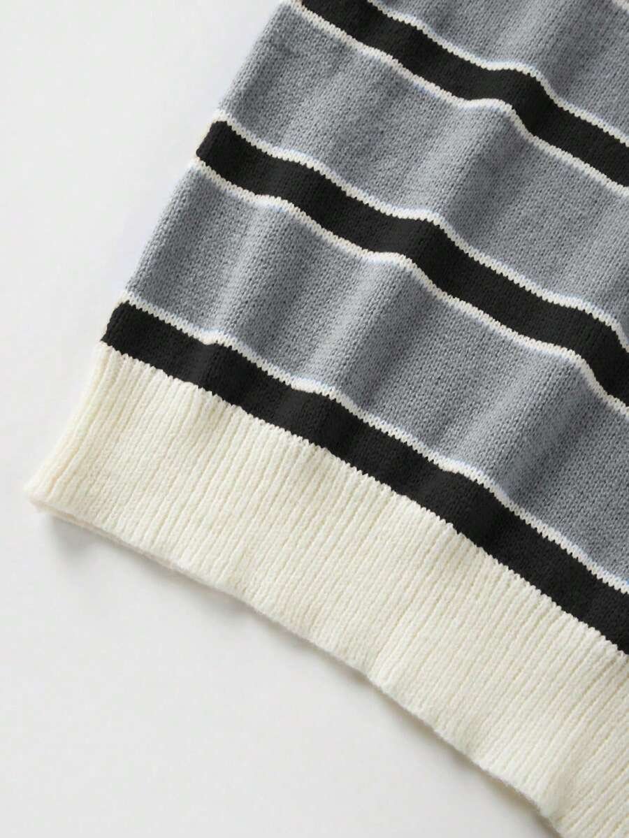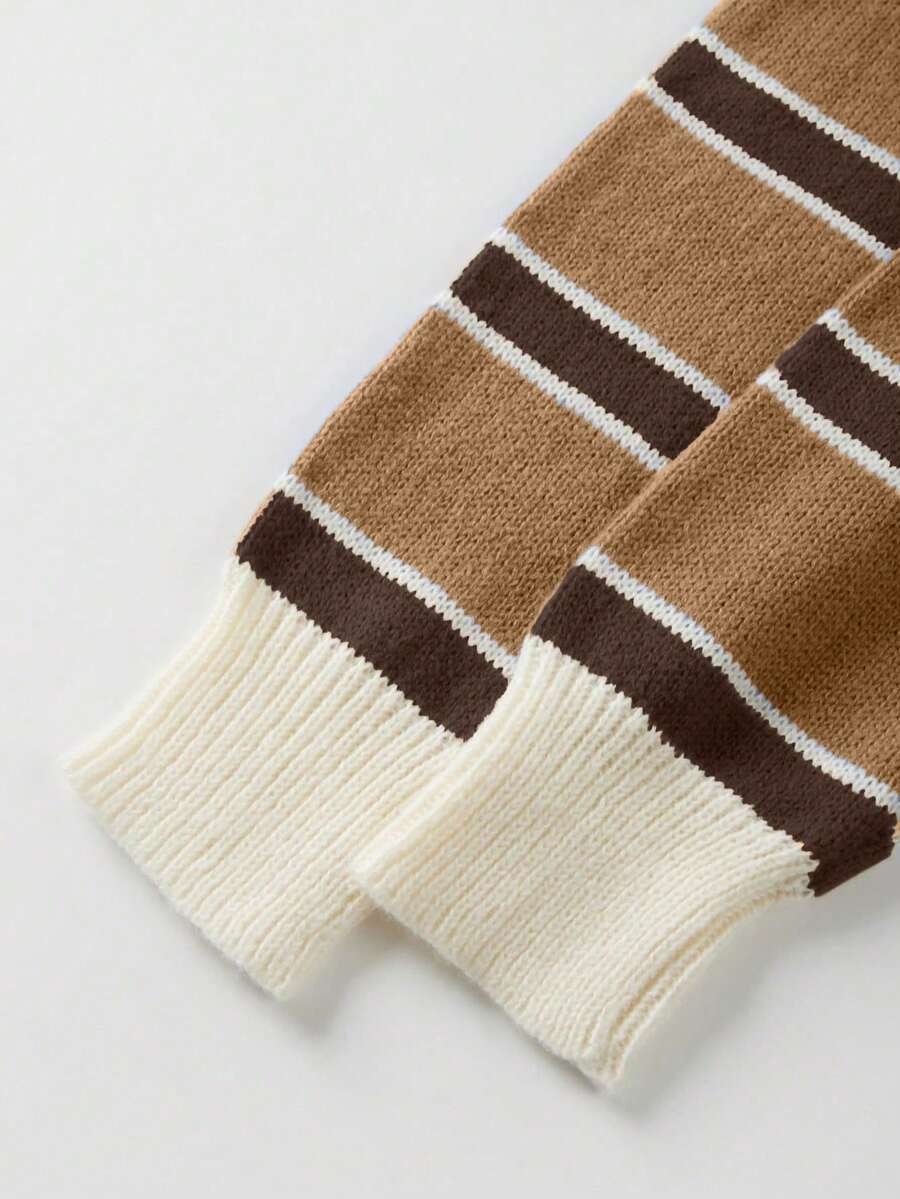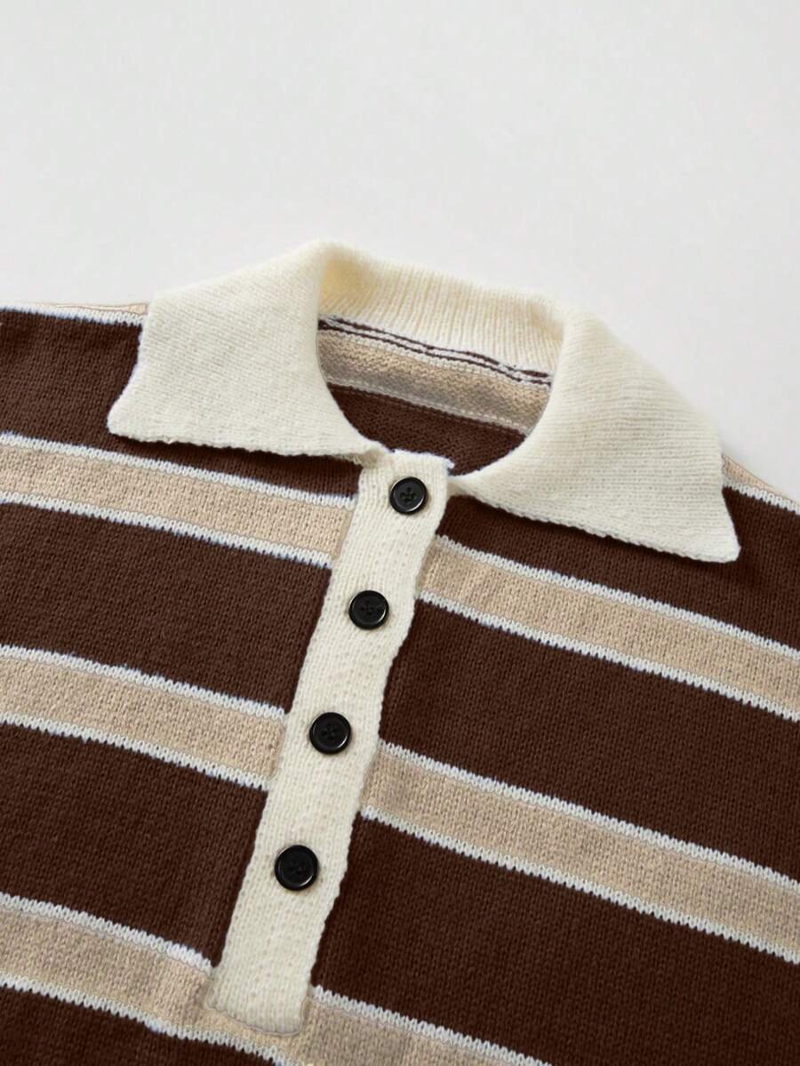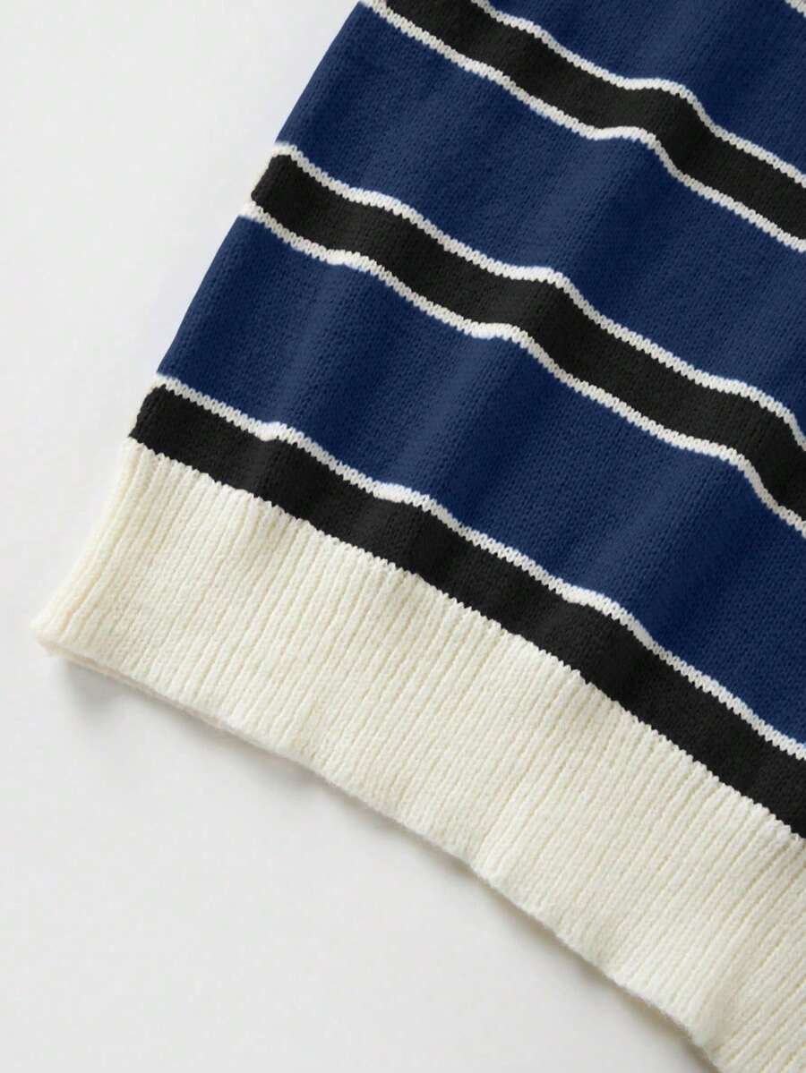 - اسم المنتج: كنزة صوف بولو مخططة بتباين الألوان للنساء