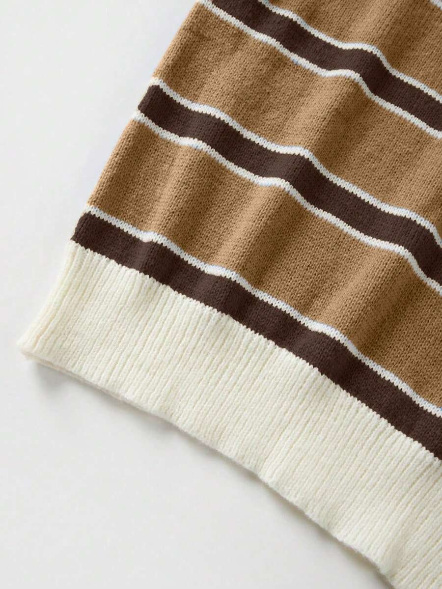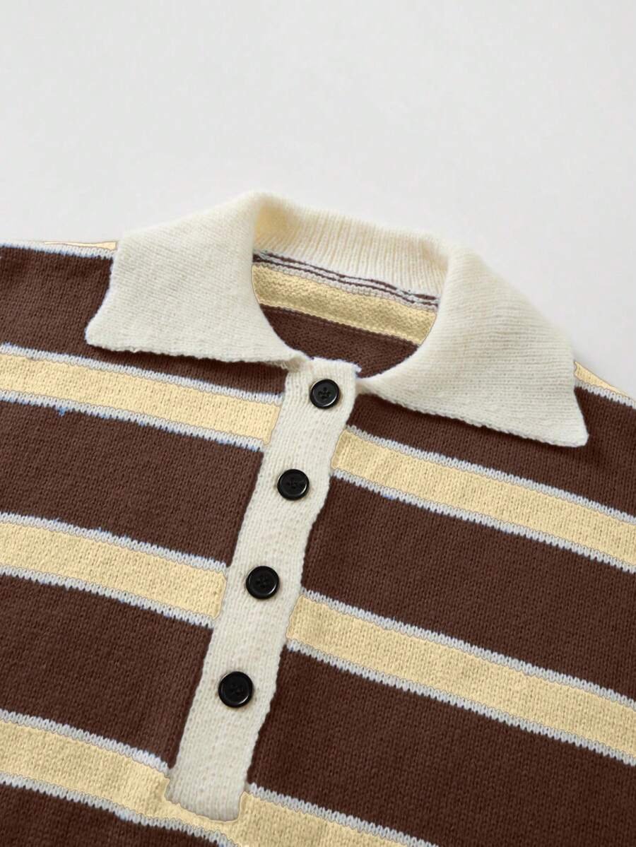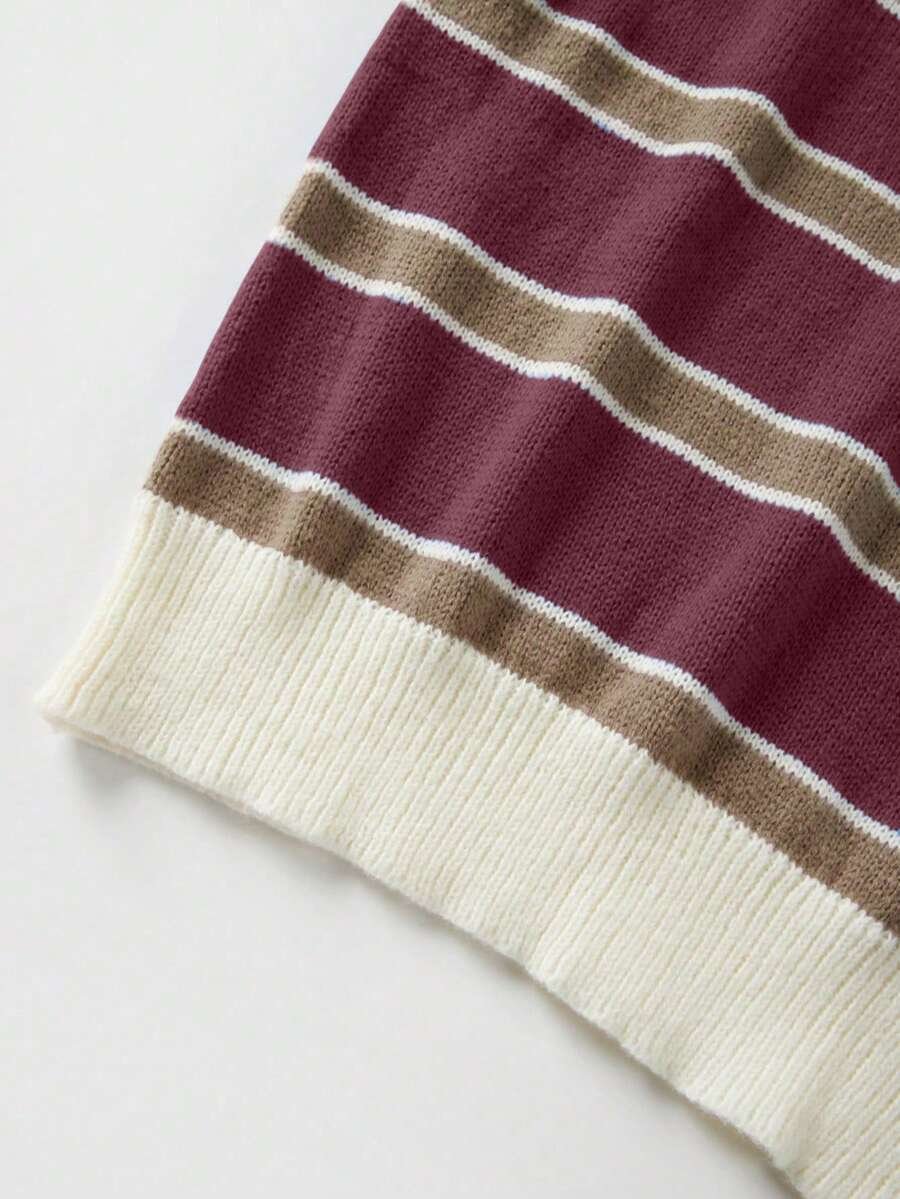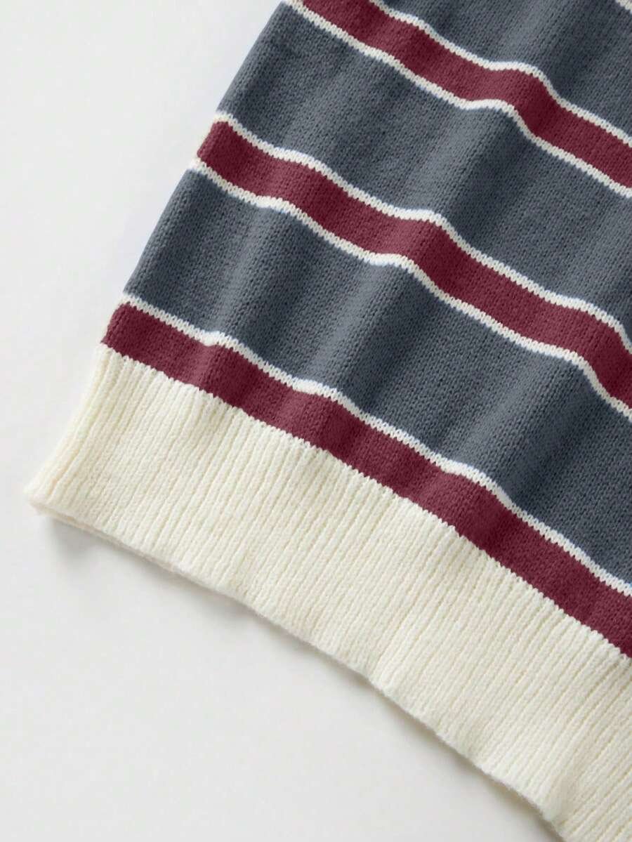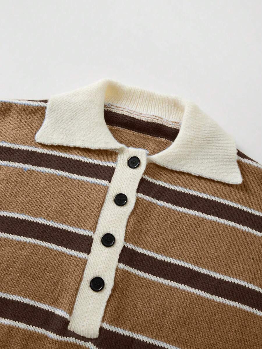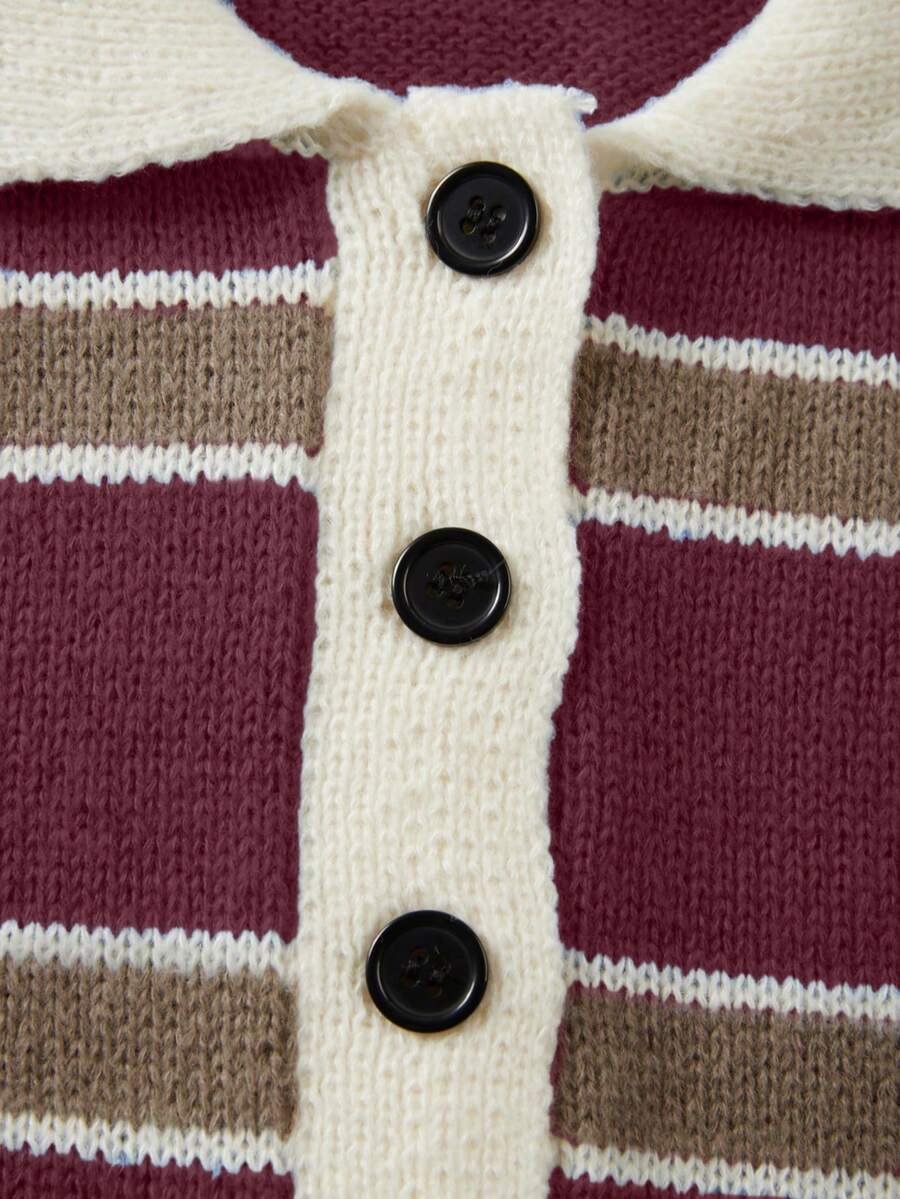 - اسم المنتج: كنزة صوف بولو مخططة بتباين الألوان للنساء