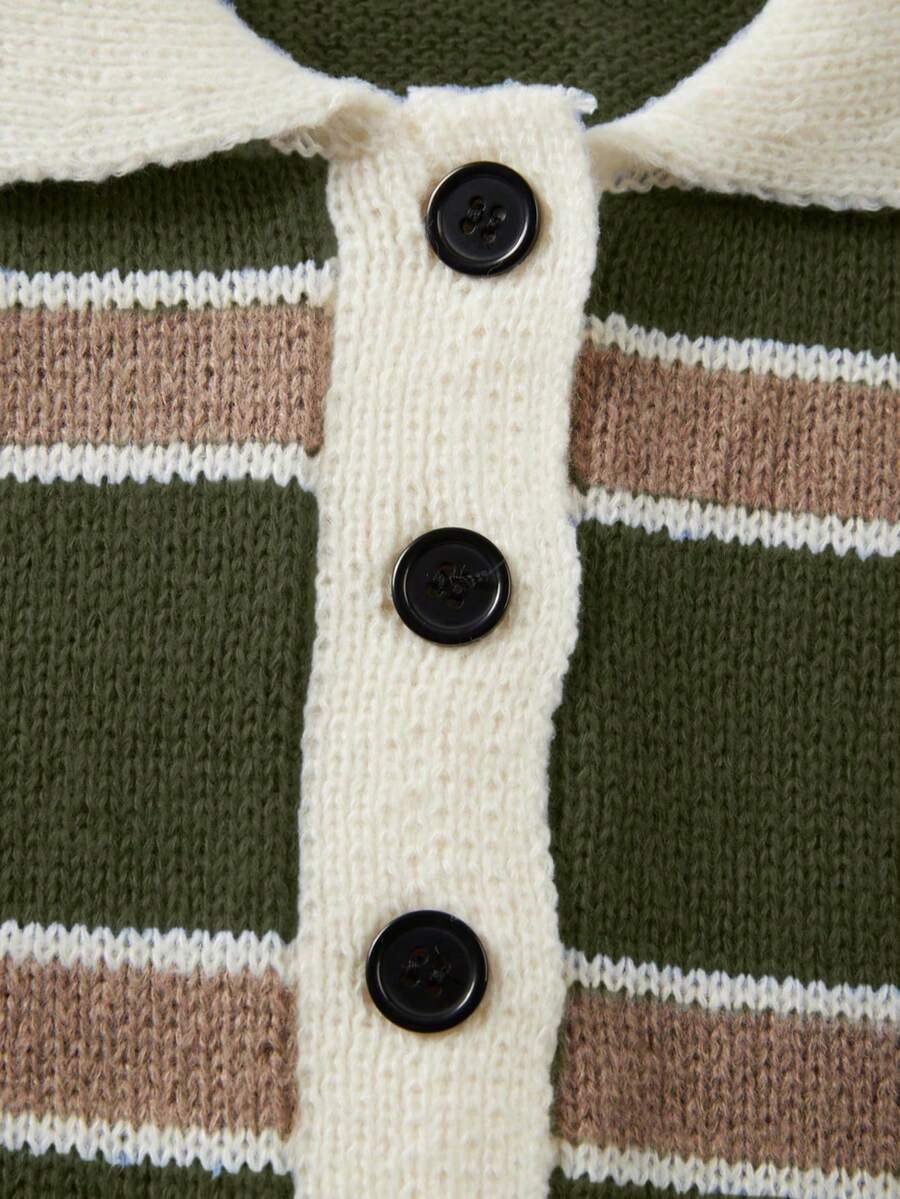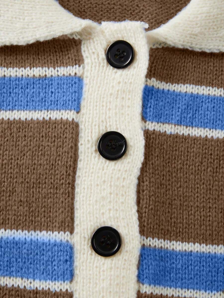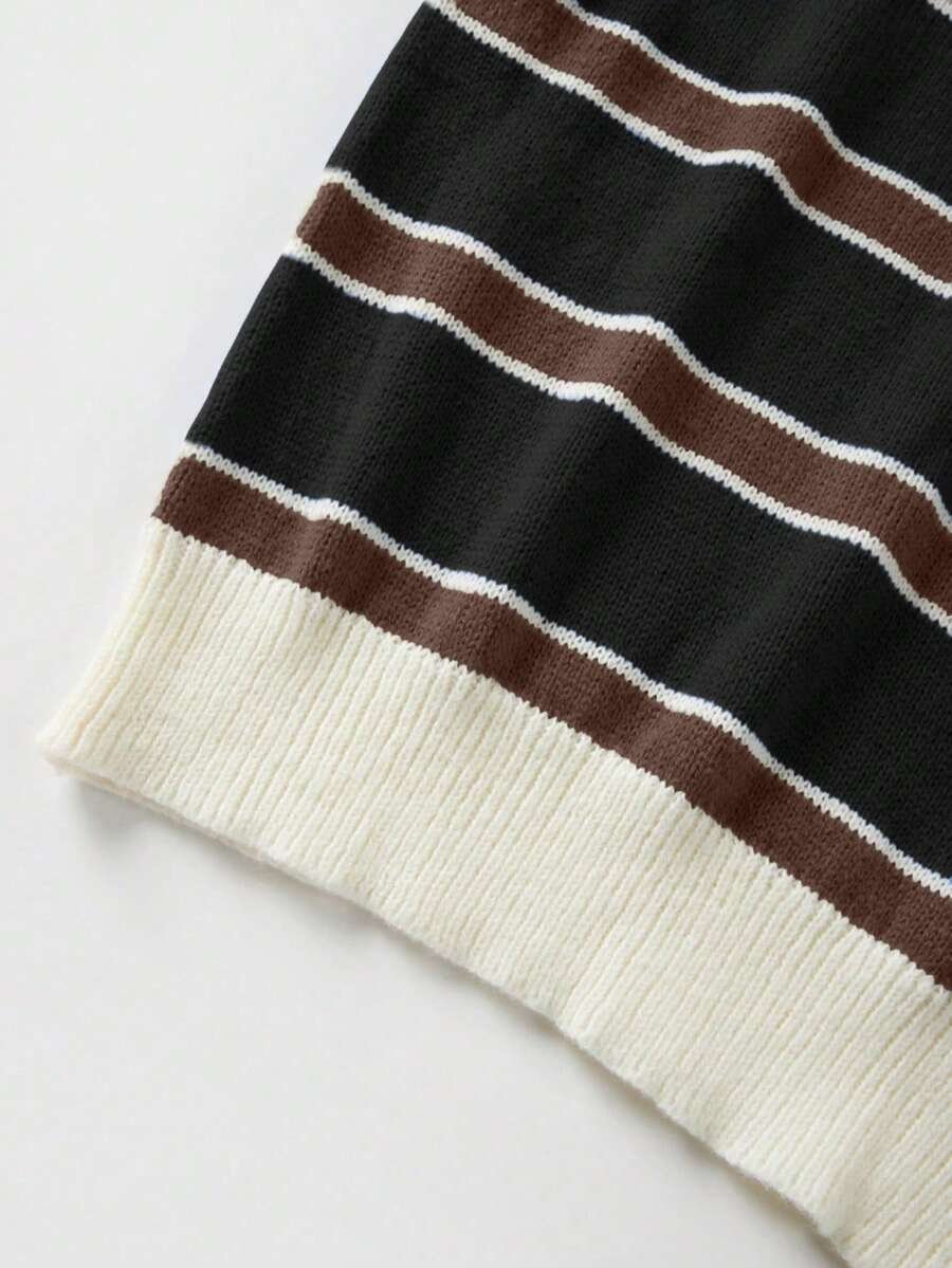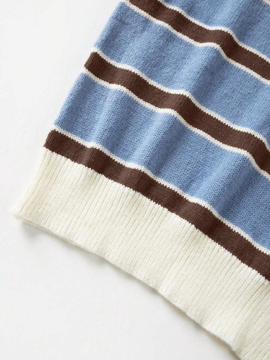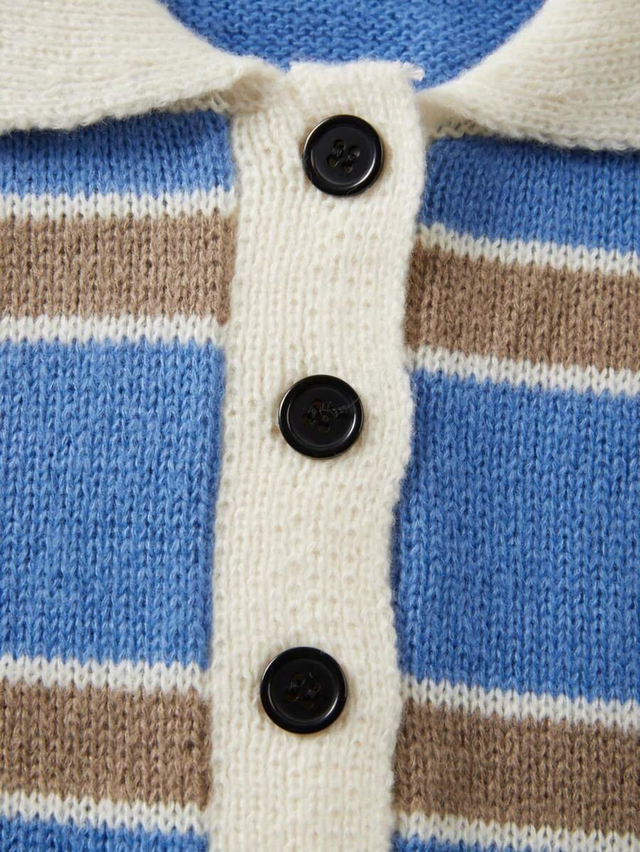- اسم المنتج: كنزة صوف بولو مخططة بتباين الألوان للنساء