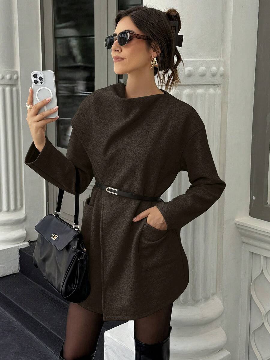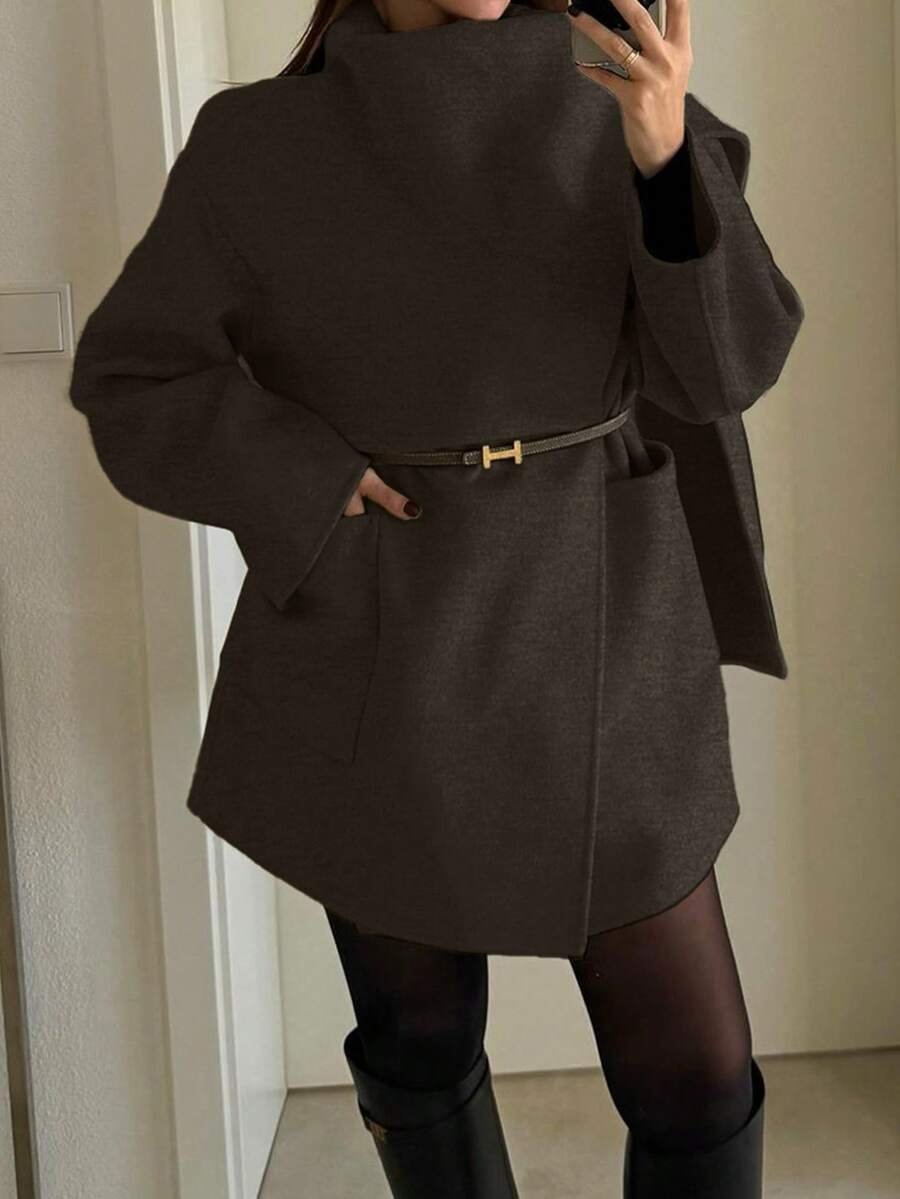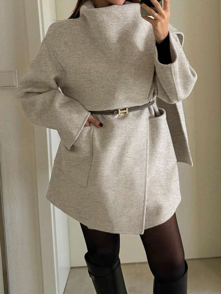 معطف نسائي بياقة عالية مع حزام – ستايل كلاسيكي