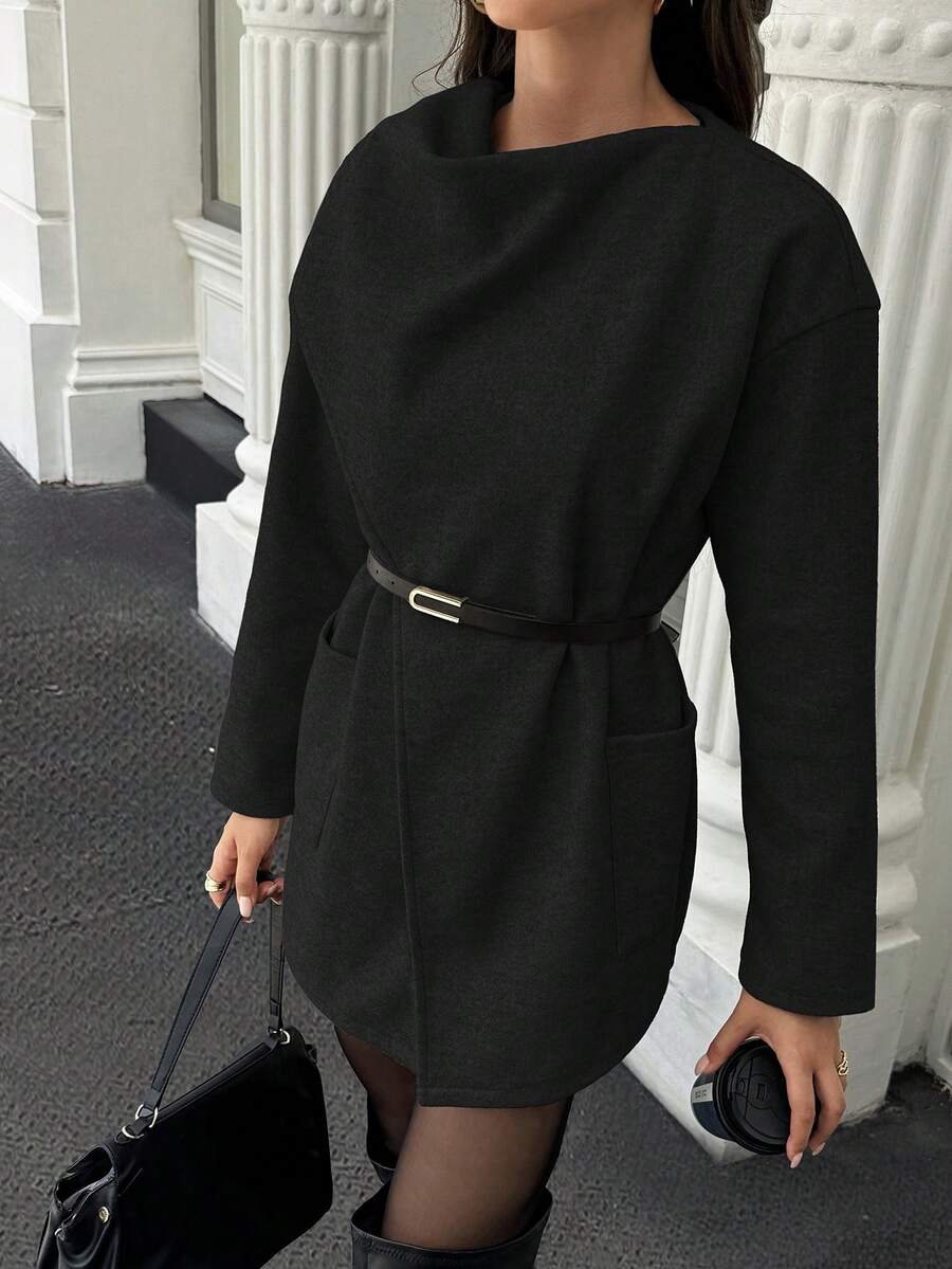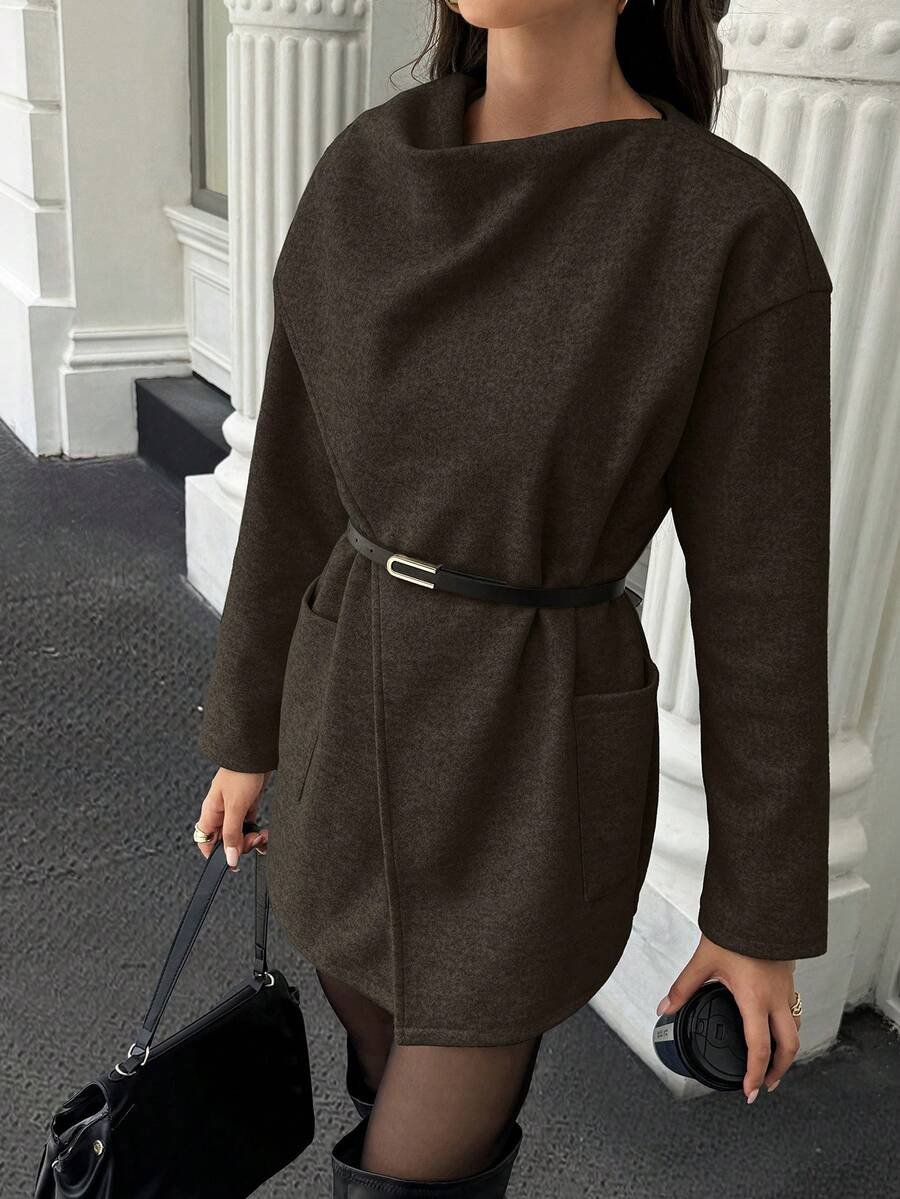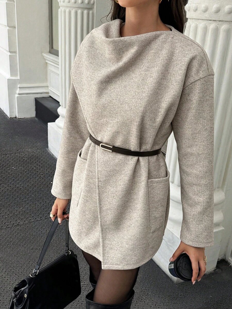 معطف نسائي بياقة عالية مع حزام – ستايل كلاسيكي
