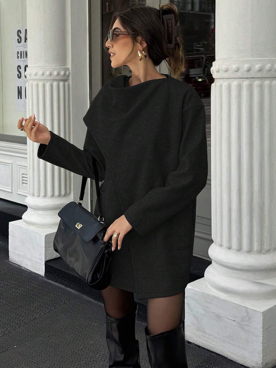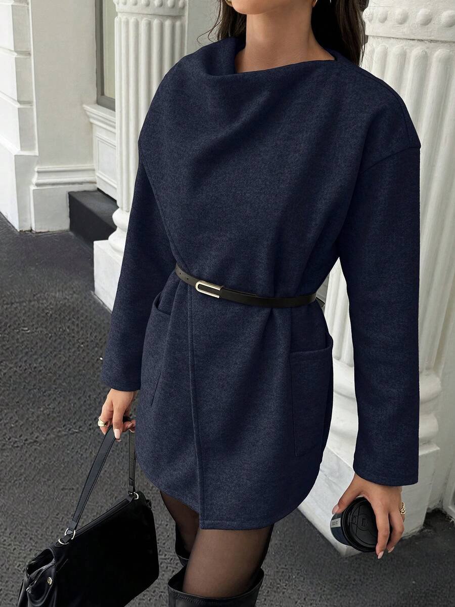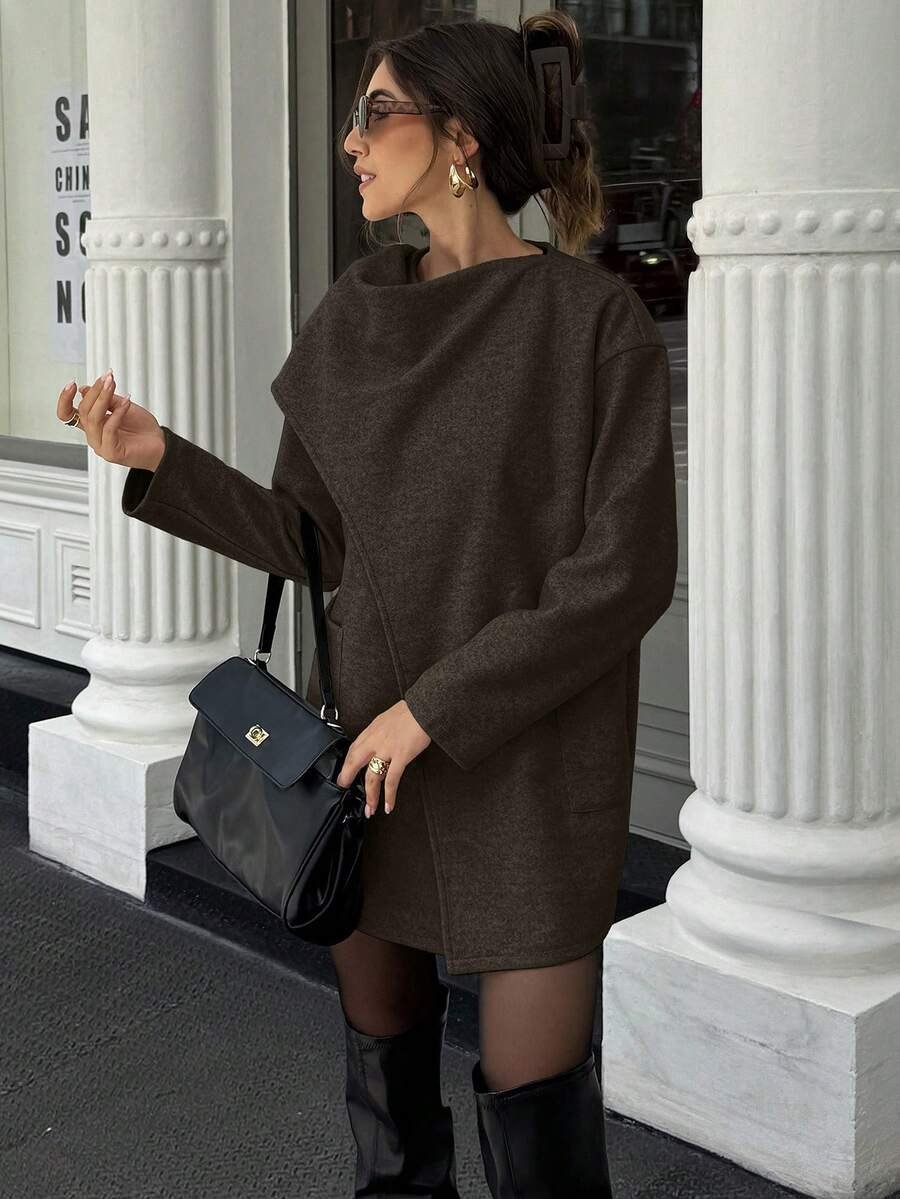 GlowEve فستان صوفي بأكمام طويلة وياقة طاقم