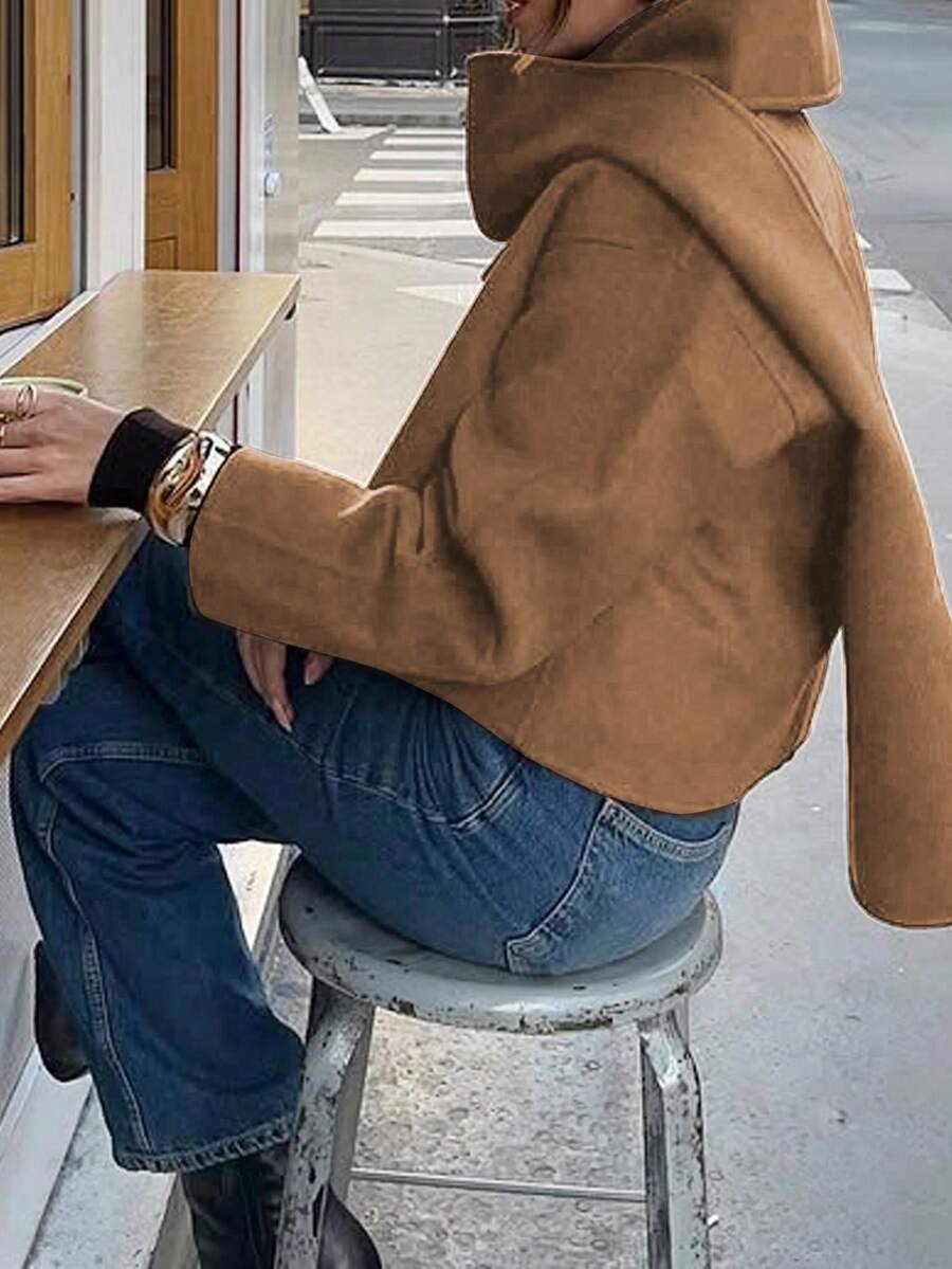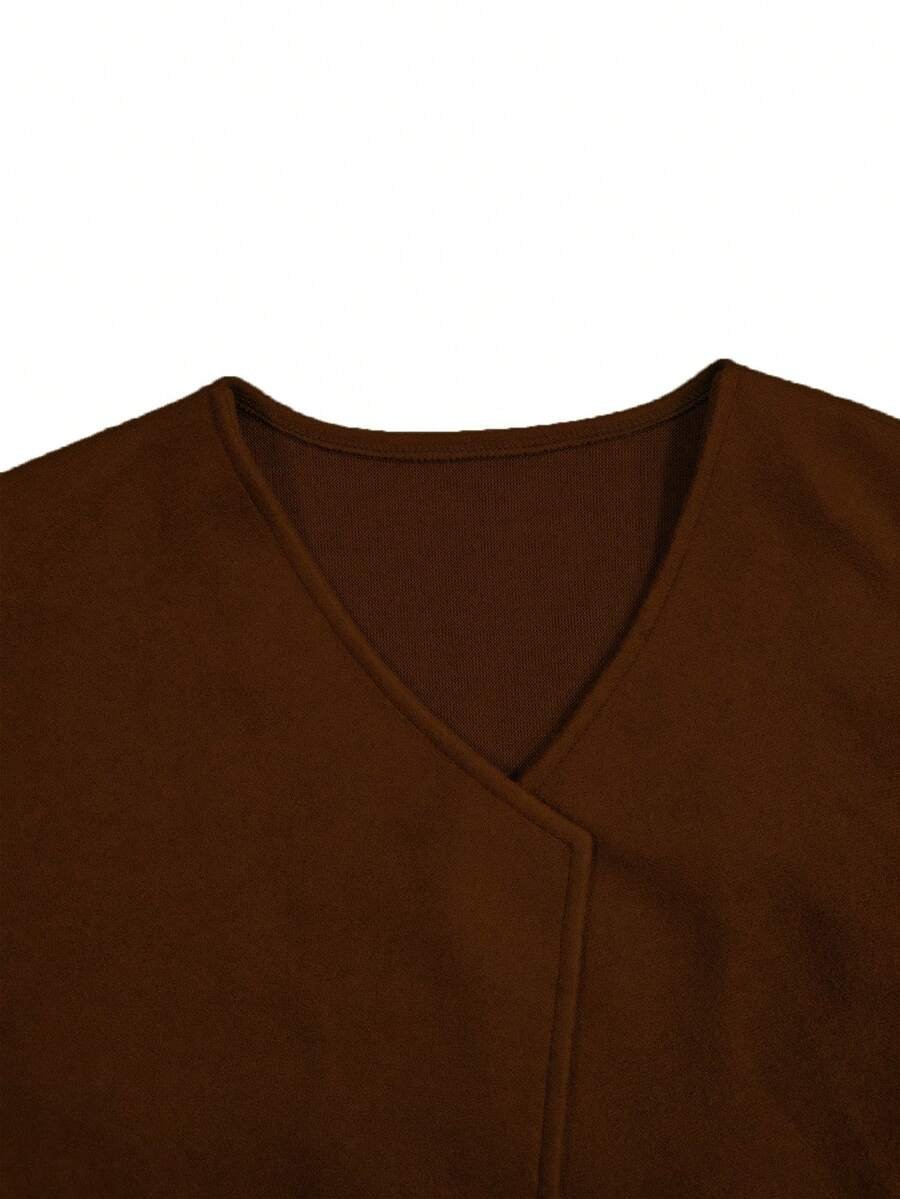 - اسم المنتج: معطف نسائي قصير بأكمام طويلة وياقة V