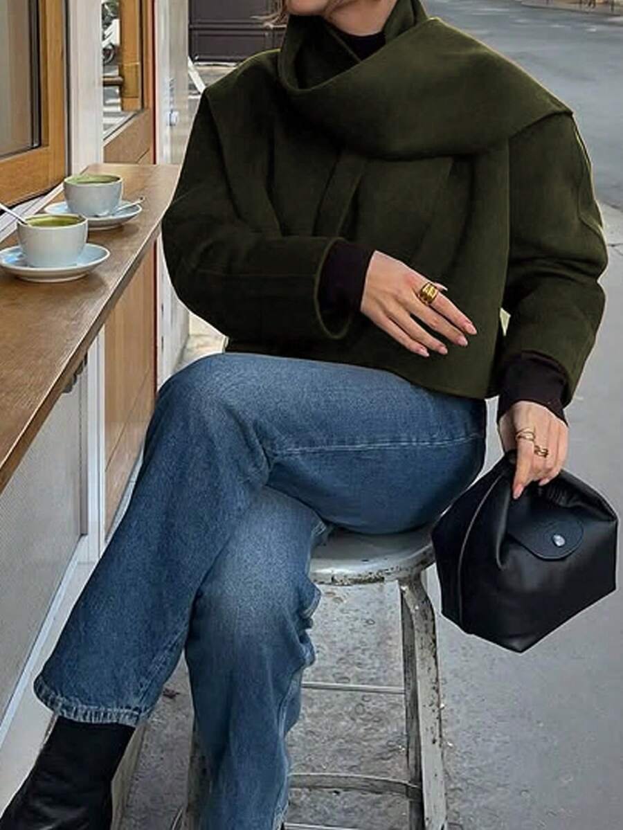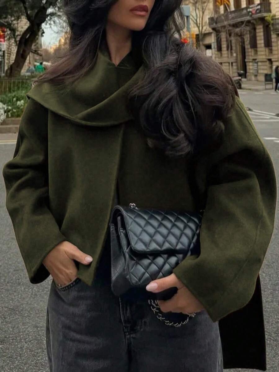 معطف نسائي قصير بأكمام طويلة وياقة V