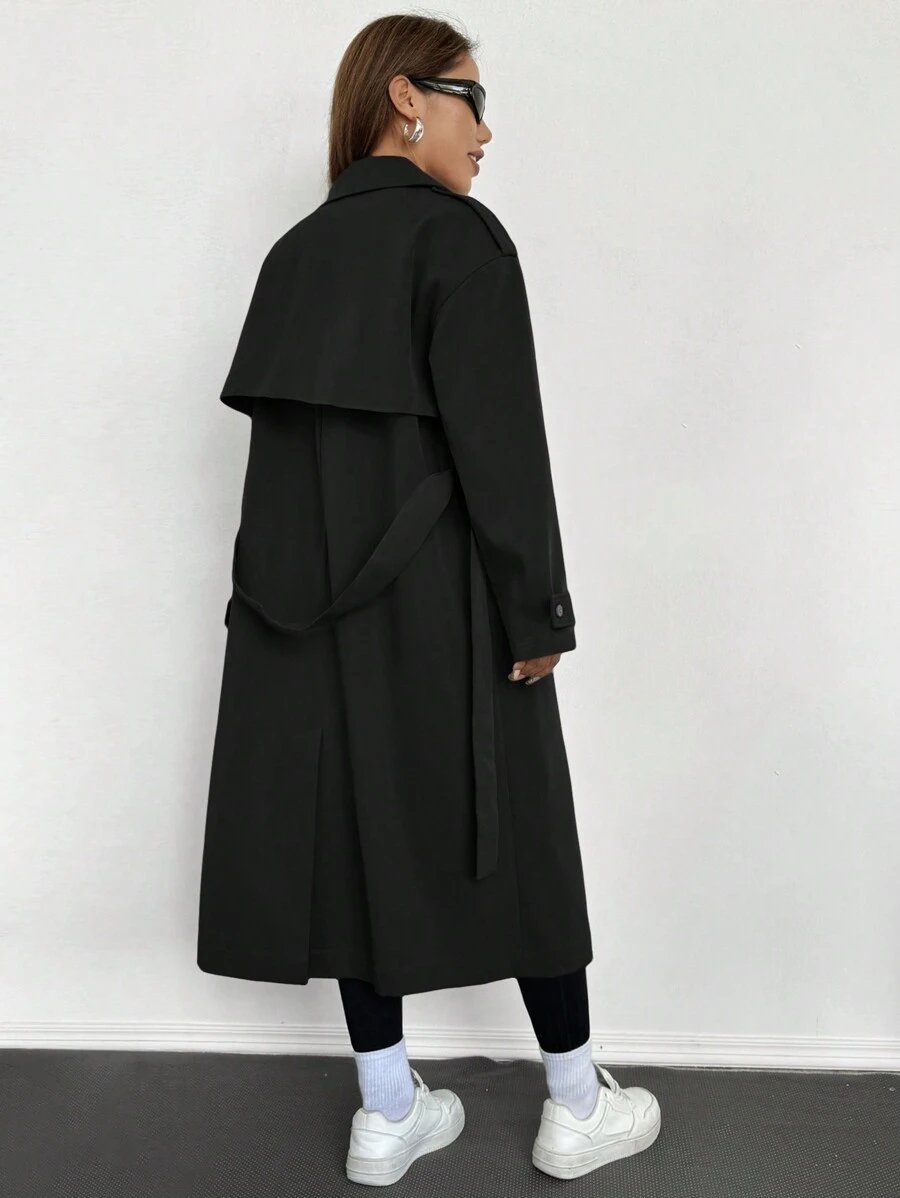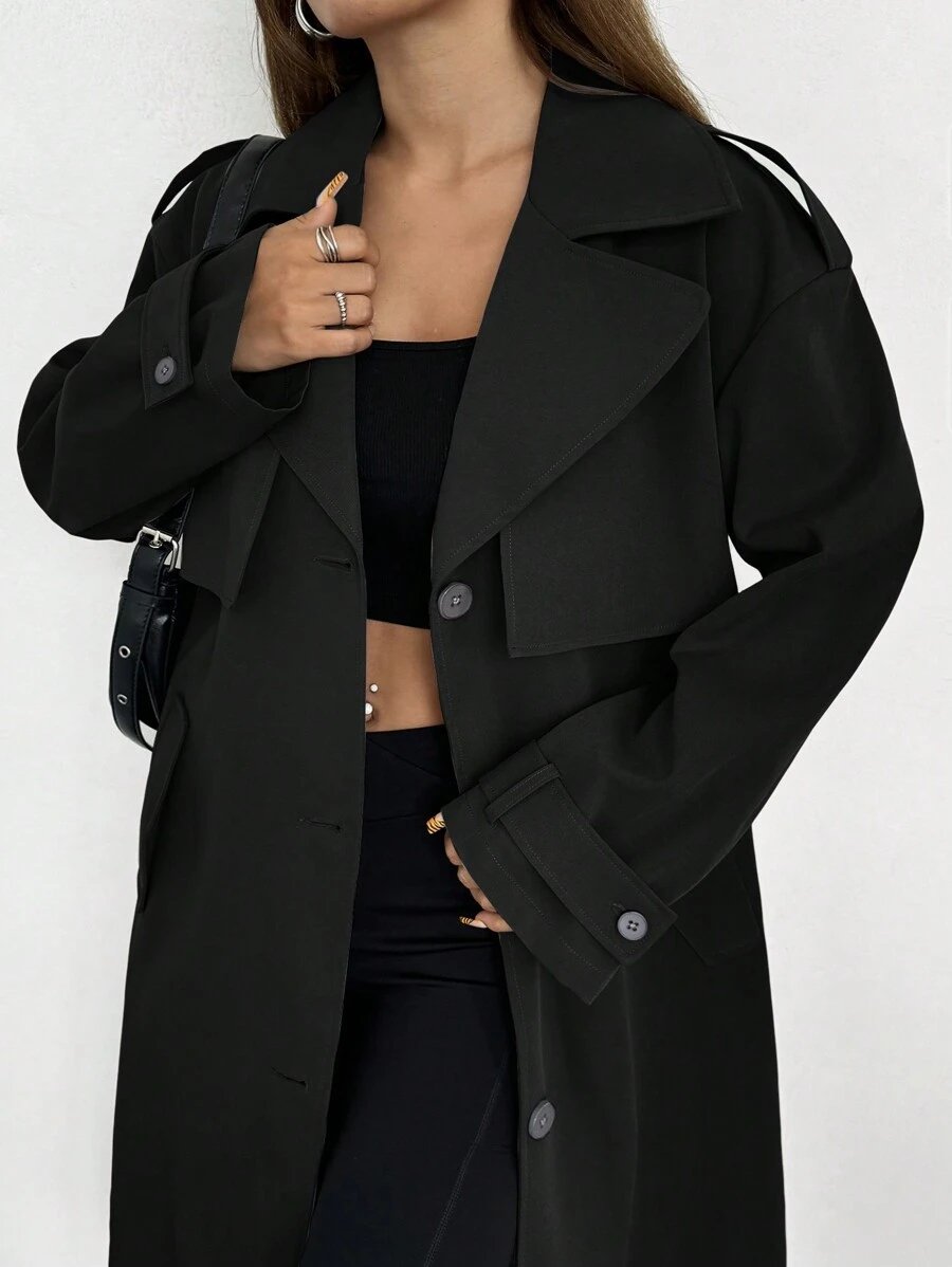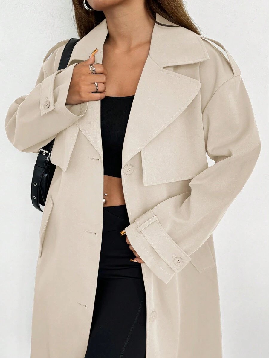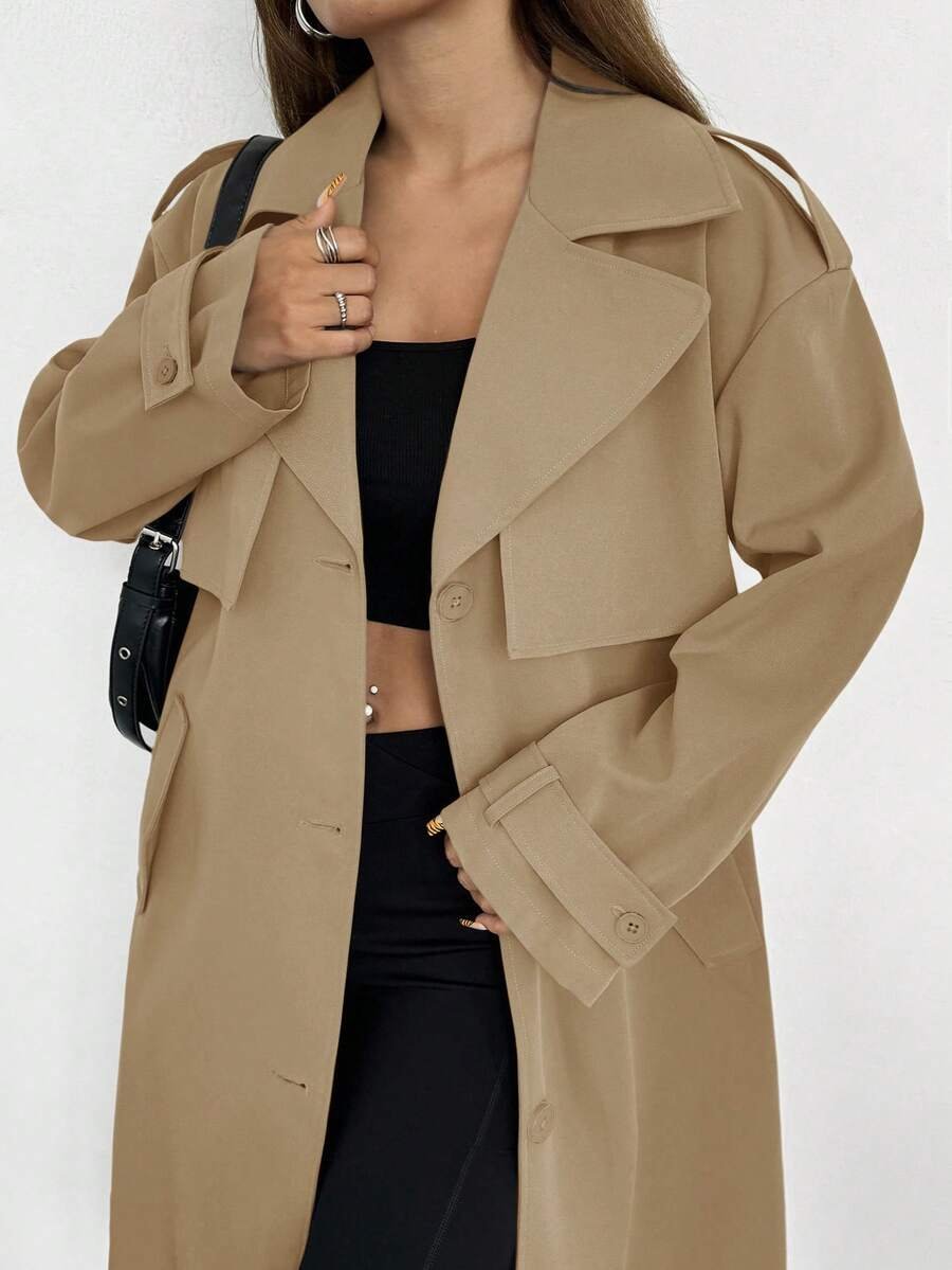 Celisse معطف ترينش فضفاض بياقة عالية للنساء باللون الأحادي