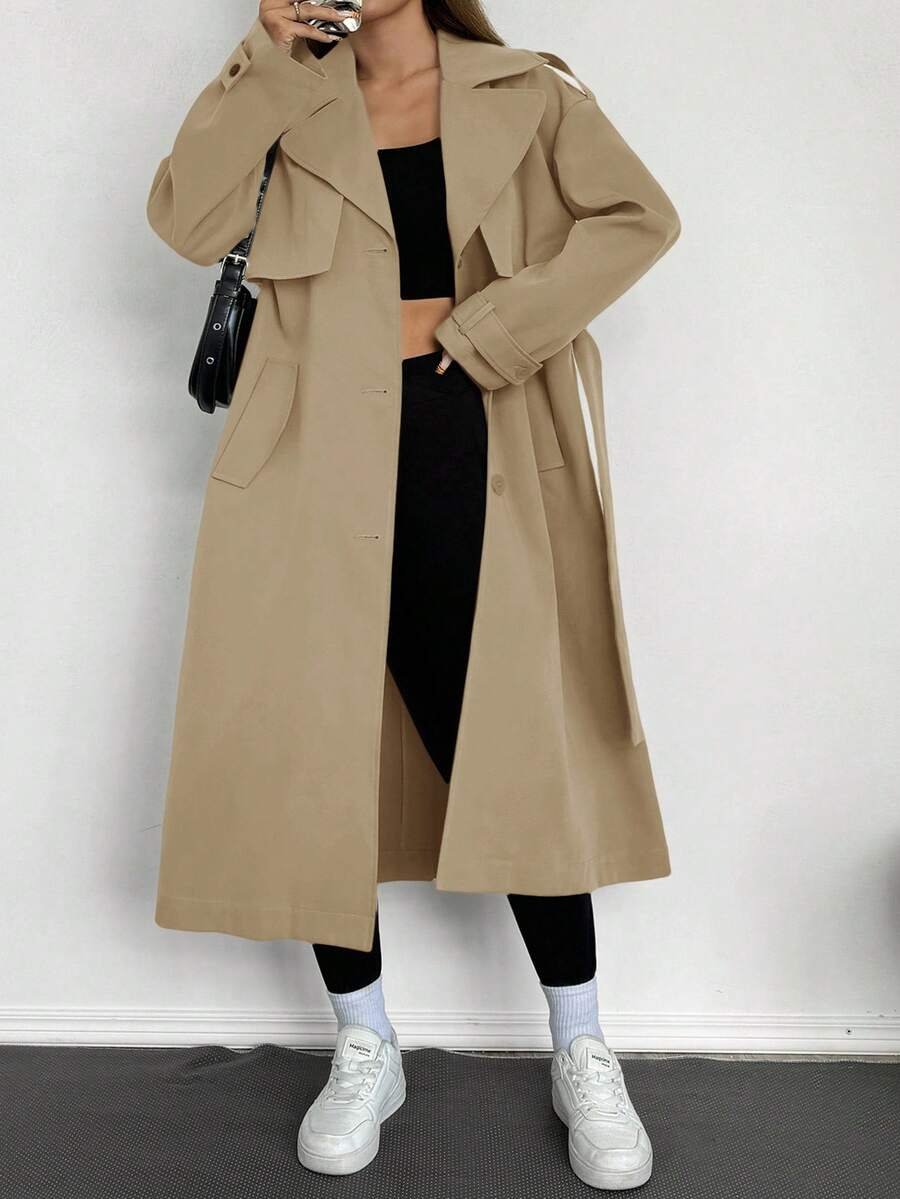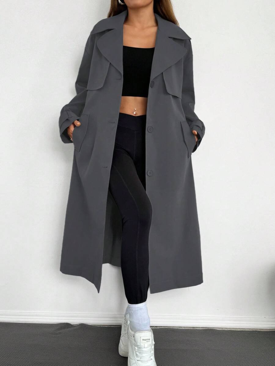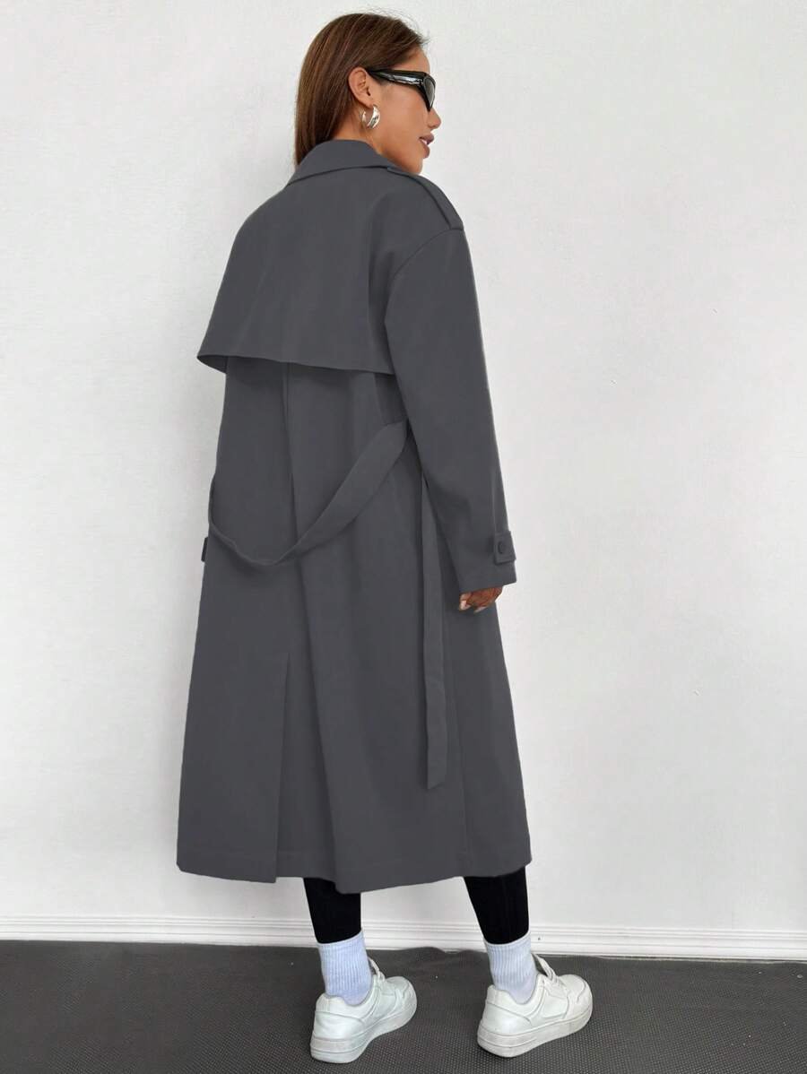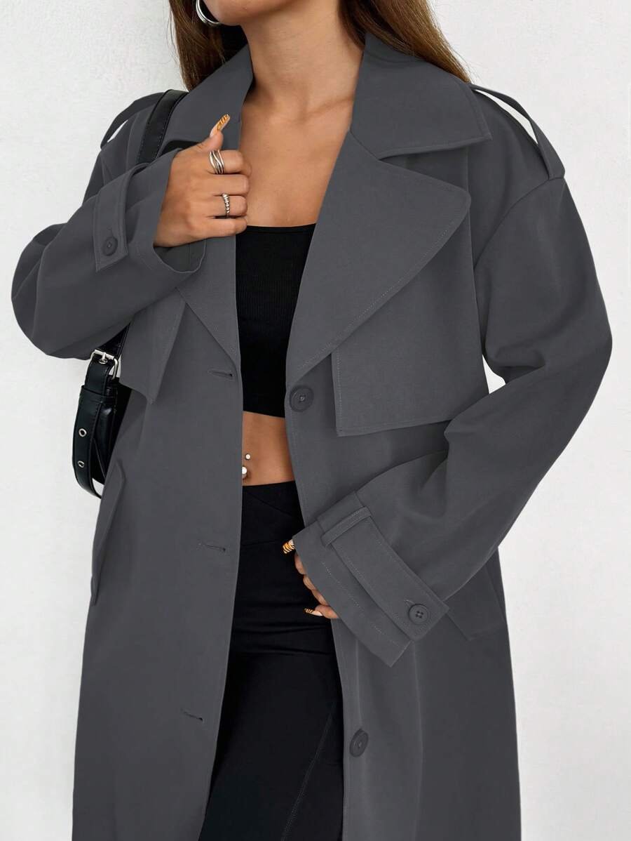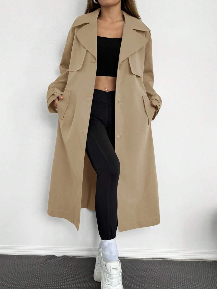 Celisse معطف ترينش فضفاض بياقة عالية للنساء باللون الأحادي
