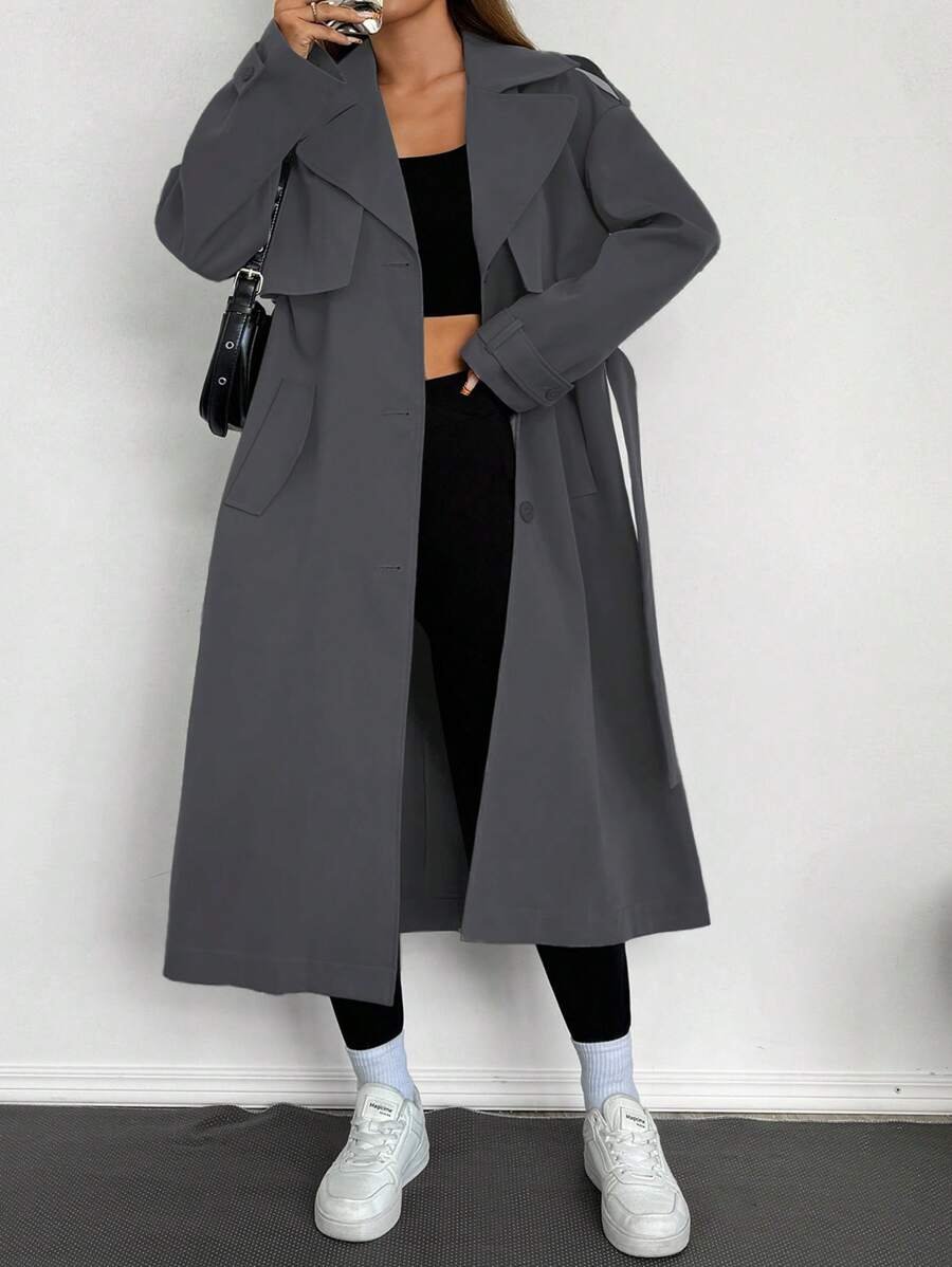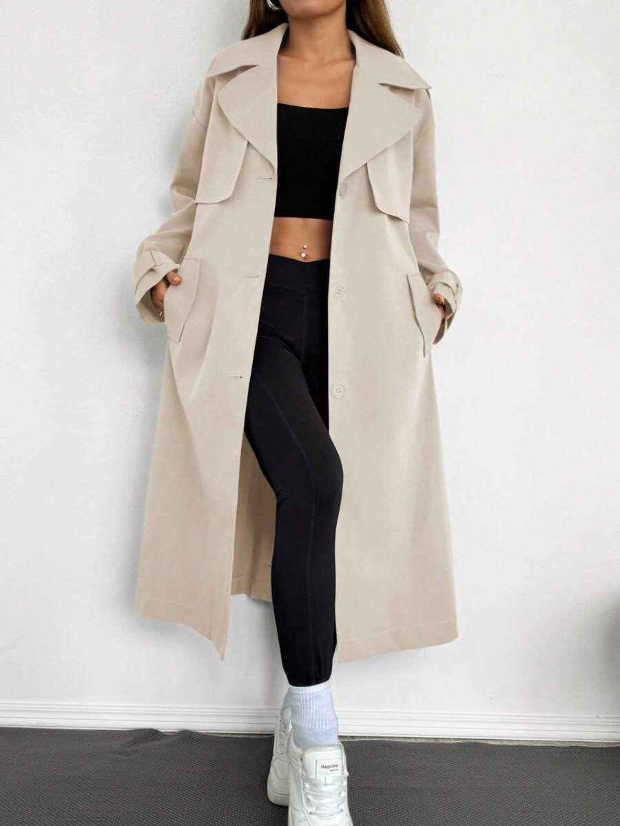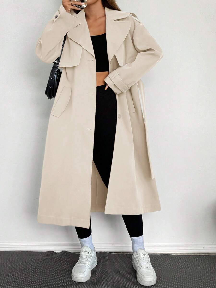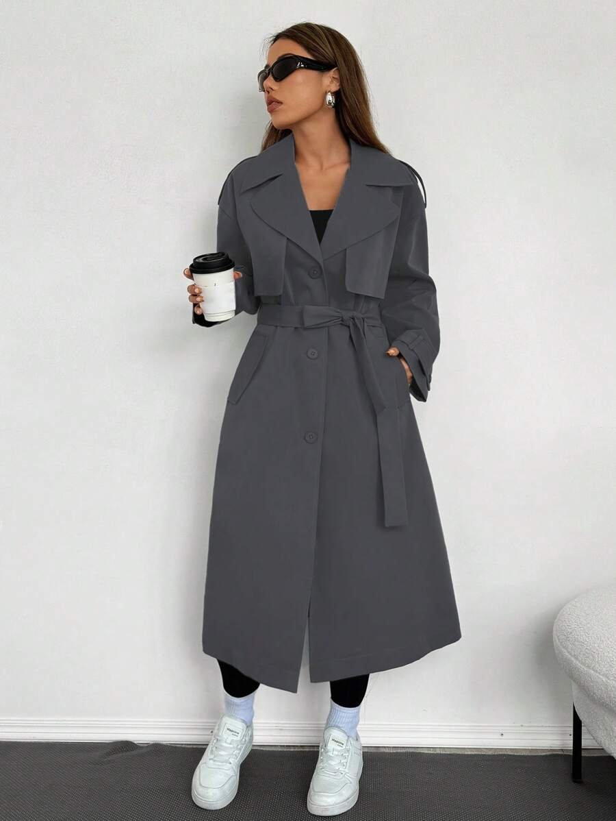 Celisse معطف ترينش فضفاض بياقة عالية للنساء باللون الأحادي