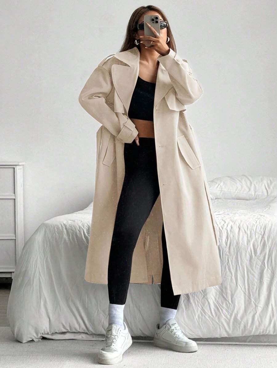 - اسم المنتج: ترنش كوت نسائي للارتداء اليومي